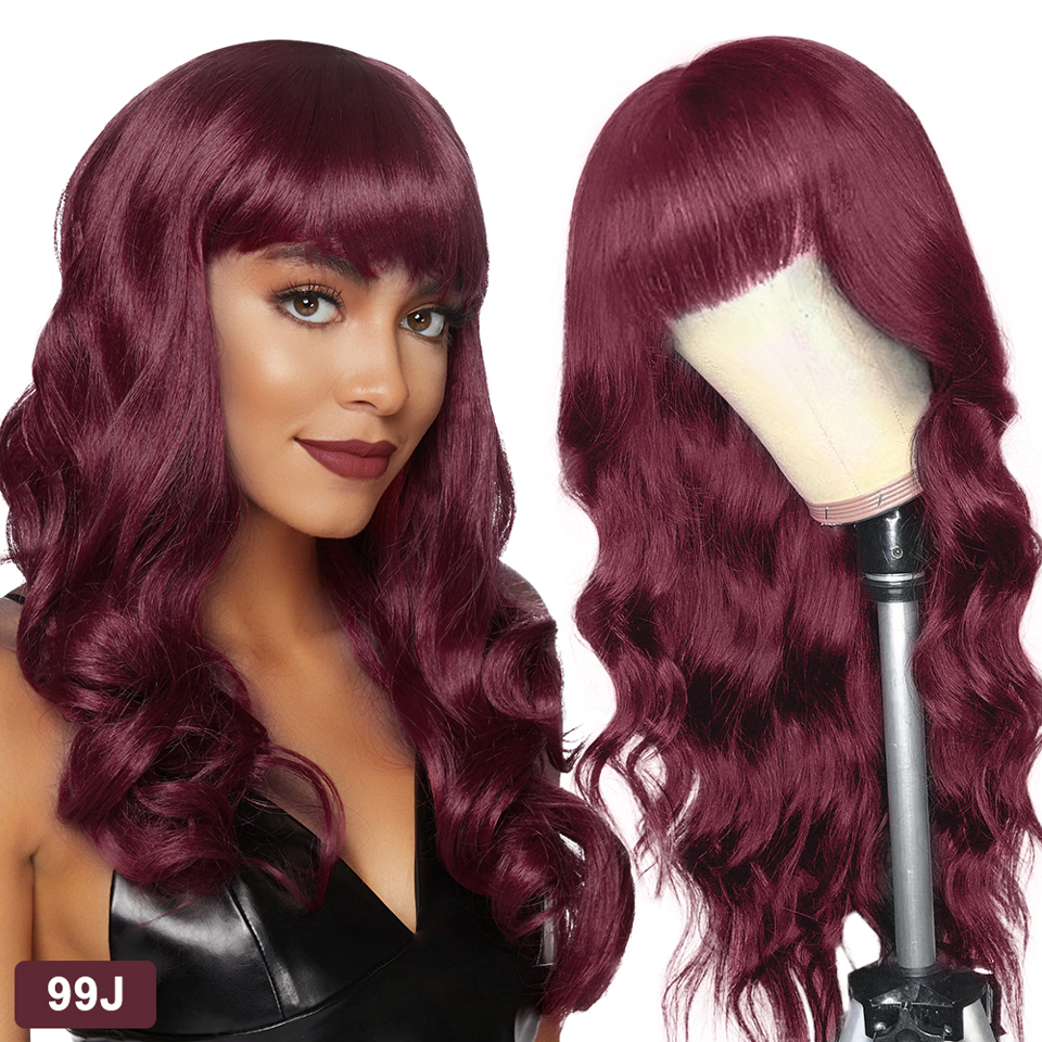 99J Body Wave Full Machine Made None Lace Front Wigs With Bangs