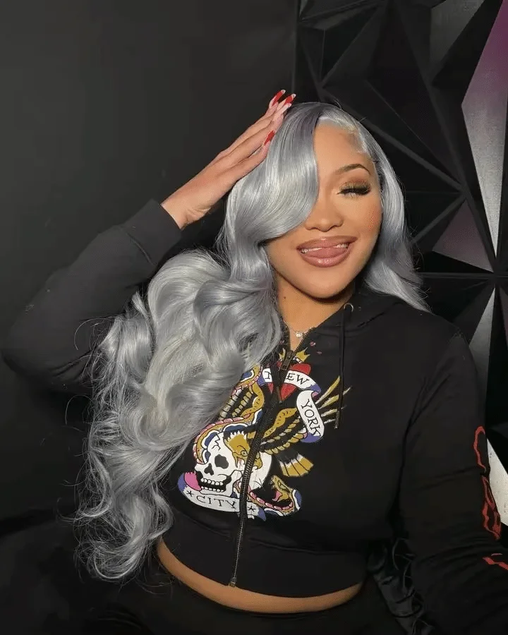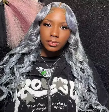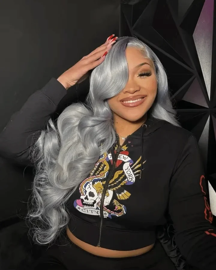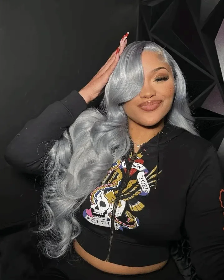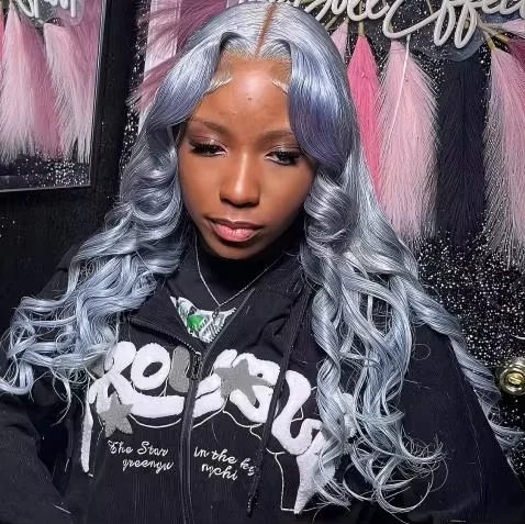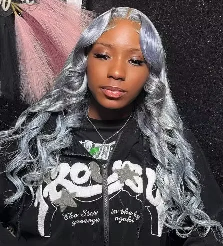 Silver Gray Body Wave HD Transparent Lace Frontal Wigs Human Hair