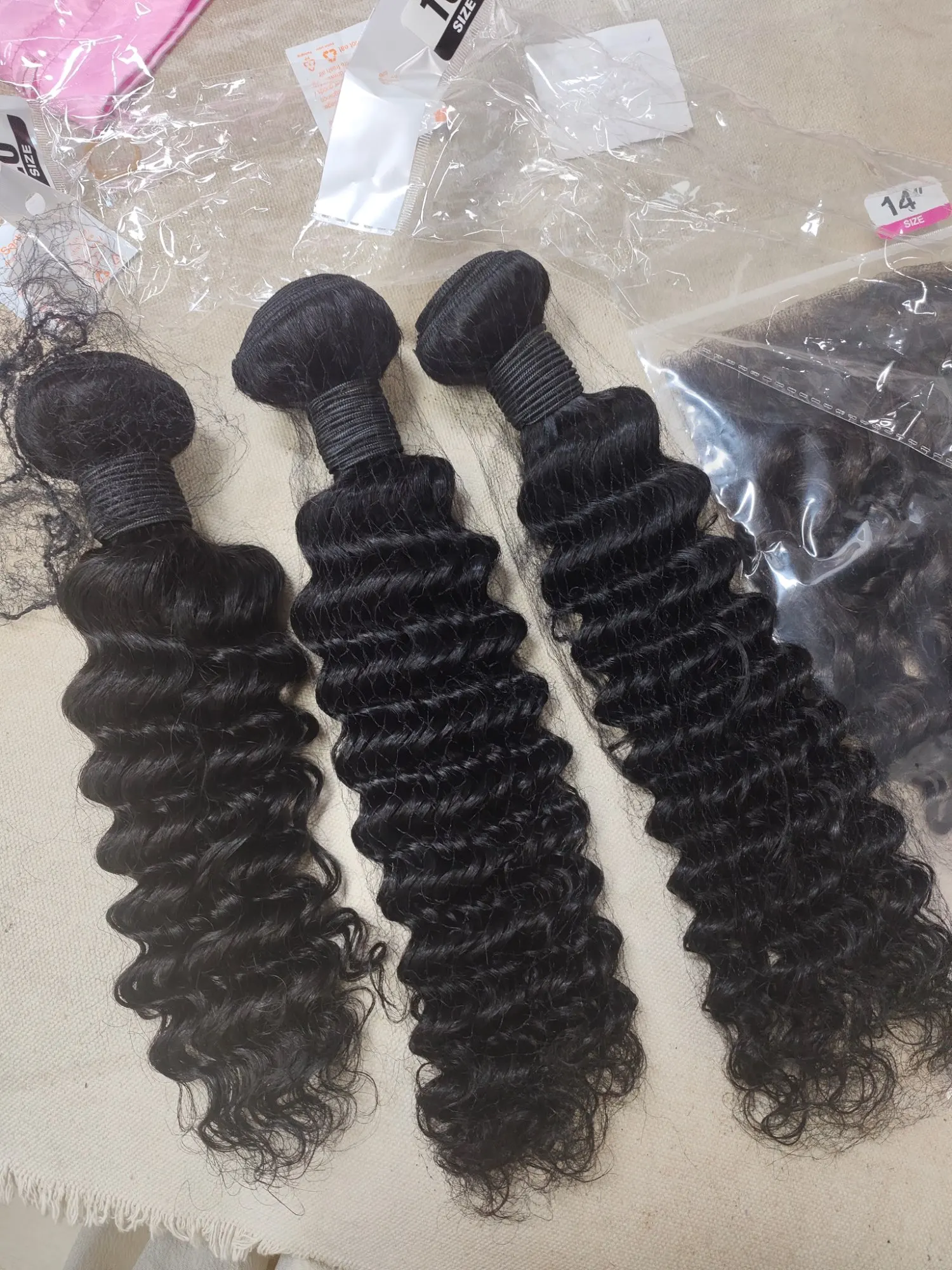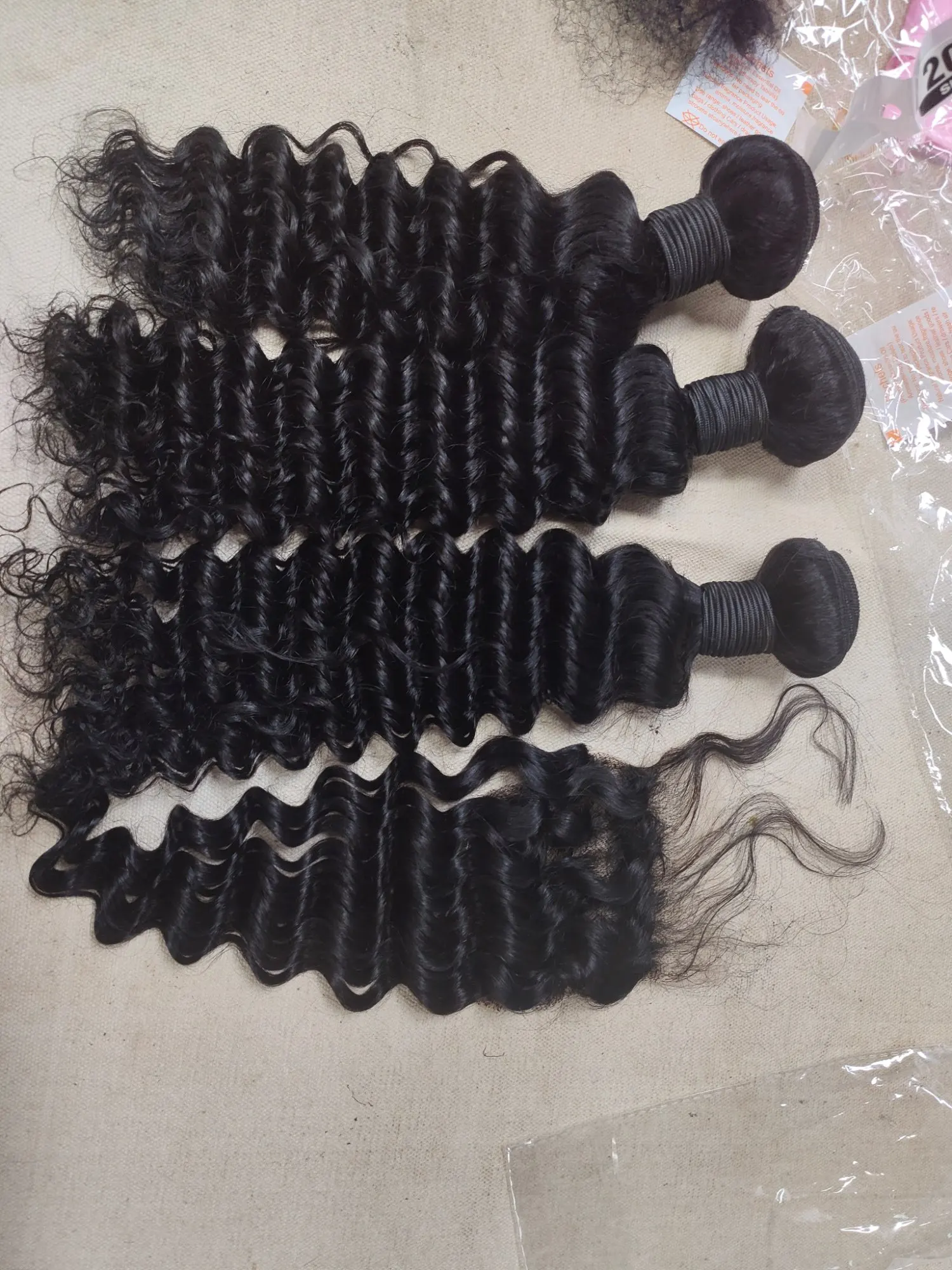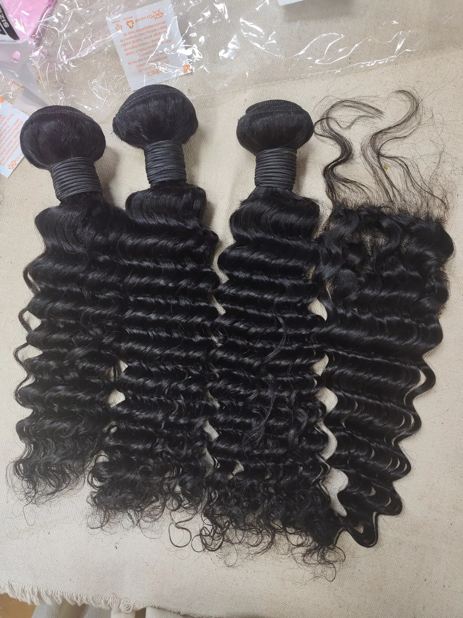 (B2) 3 Bundles Deep Wave With 4x4 Lace Closure Brazilian Human Hair Extension