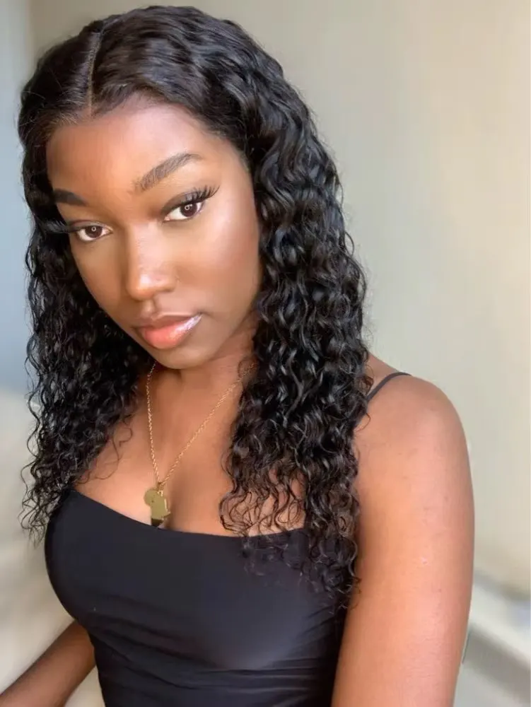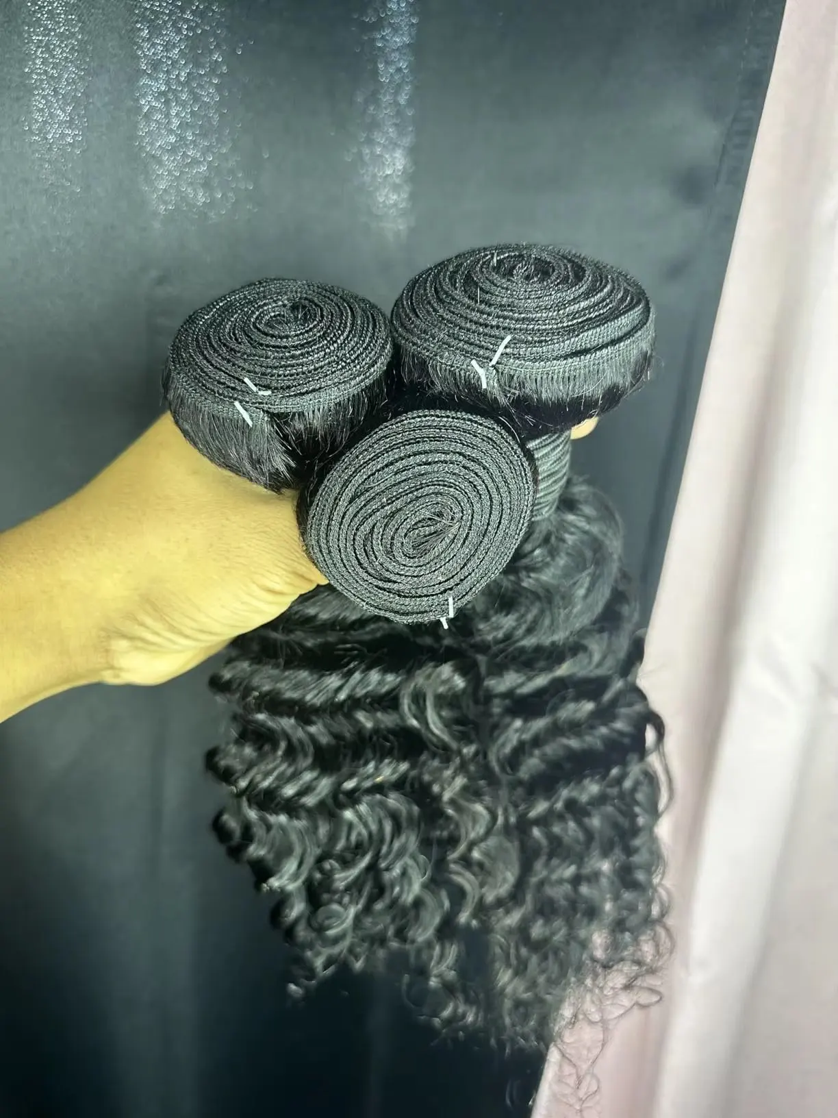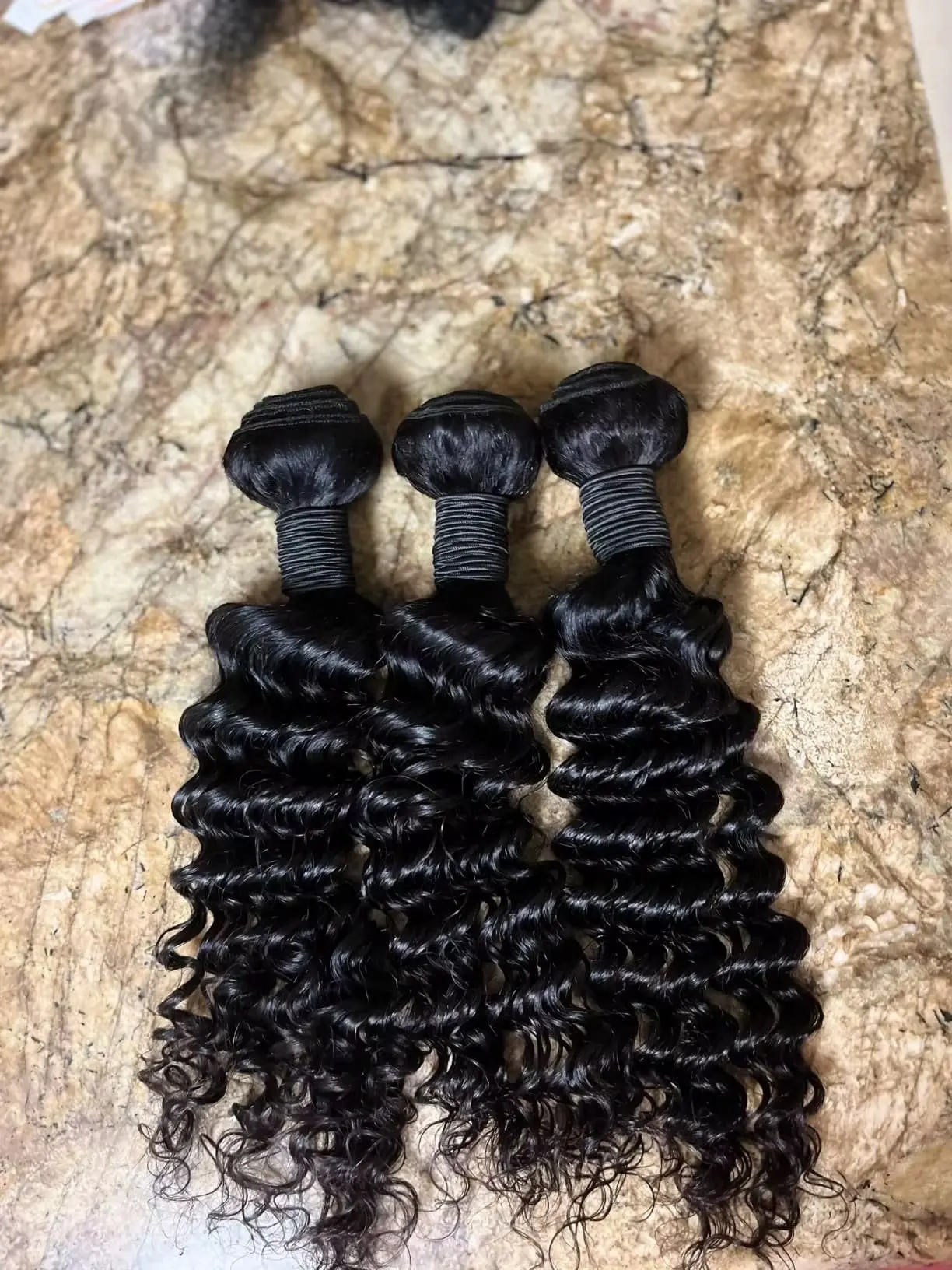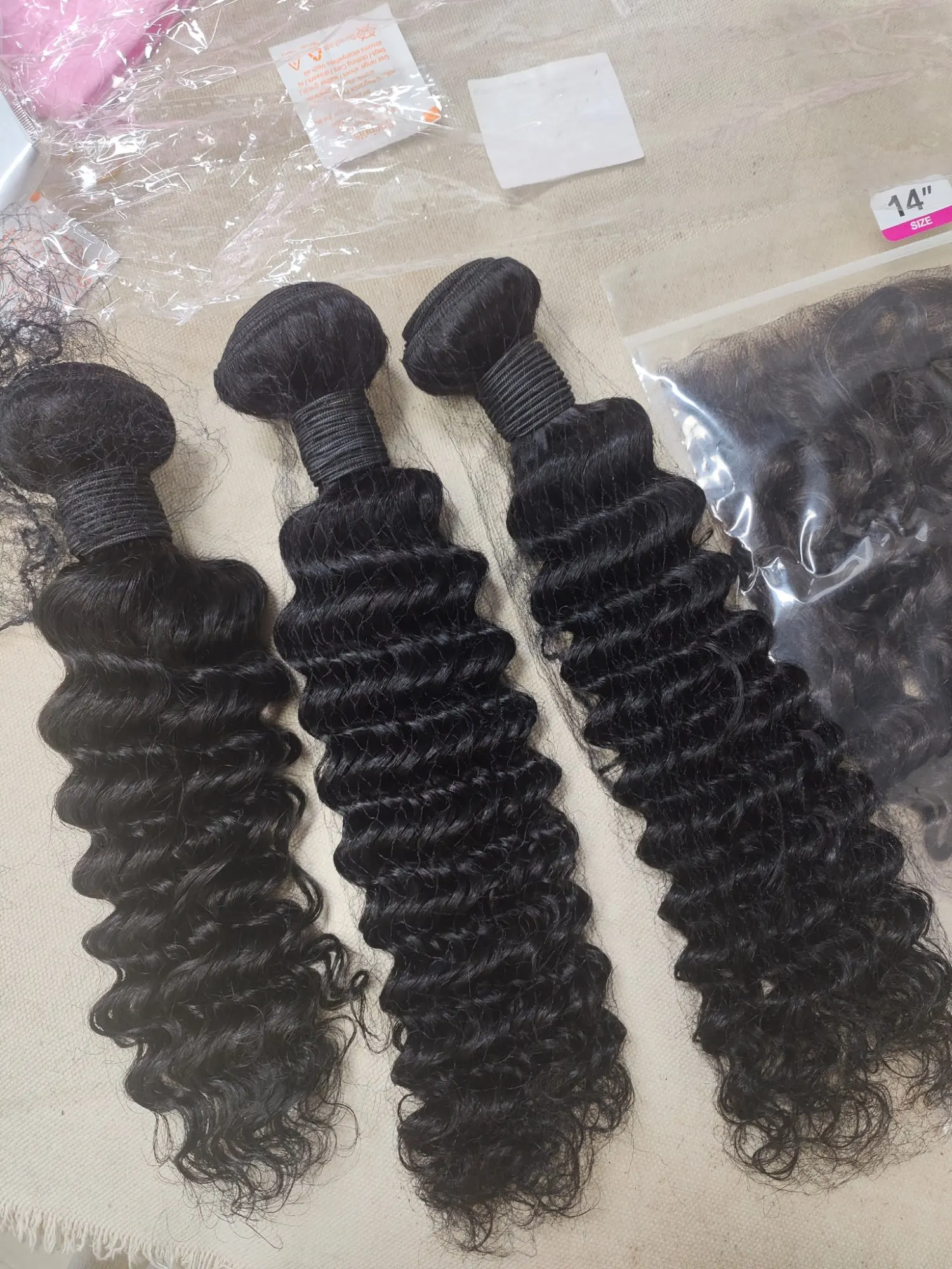 (B2) 3 Bundles Deep Wave With 4x4 Lace Closure Brazilian Human Hair Extension