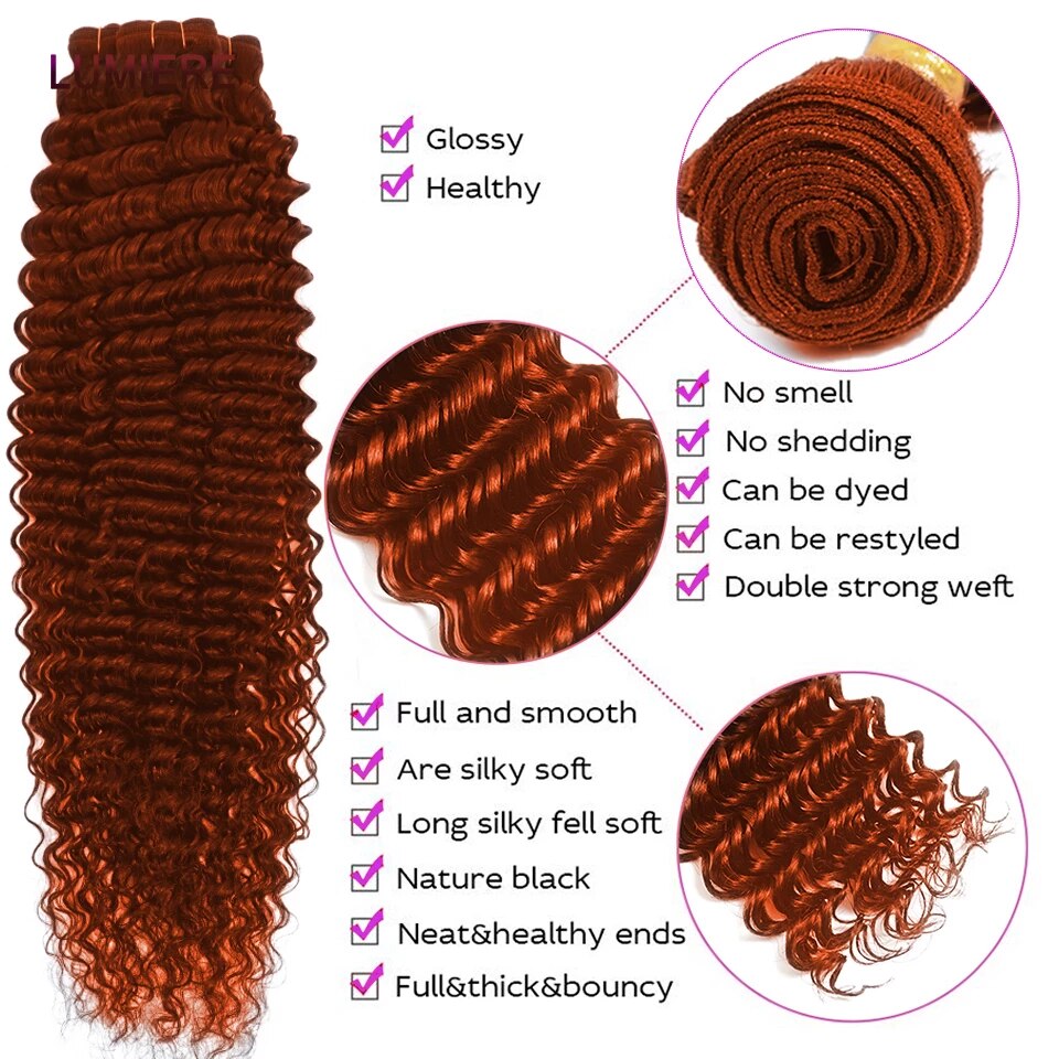 #350 Ginger Color Deep Wave 4 Bundles With 13x4 Frontal Transparent Lace Closure Frontal With Bundles Orange Remy Human Hair
