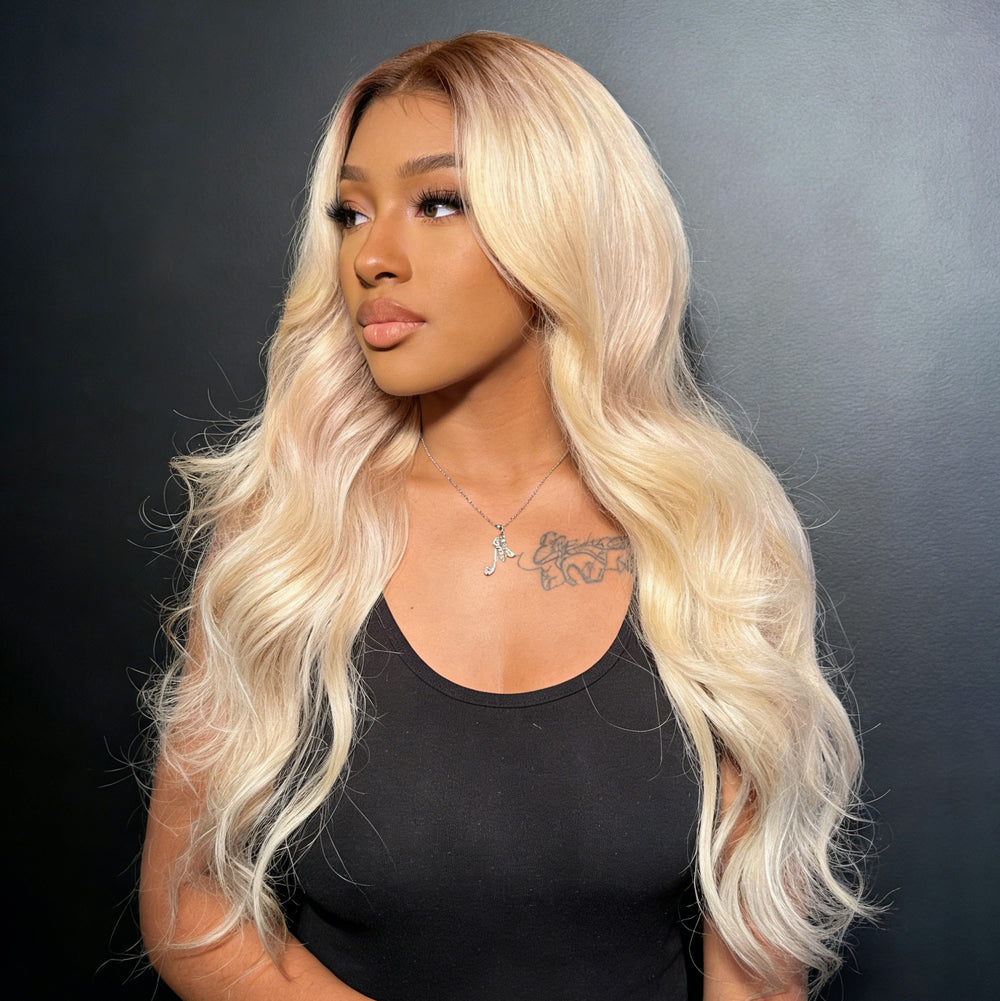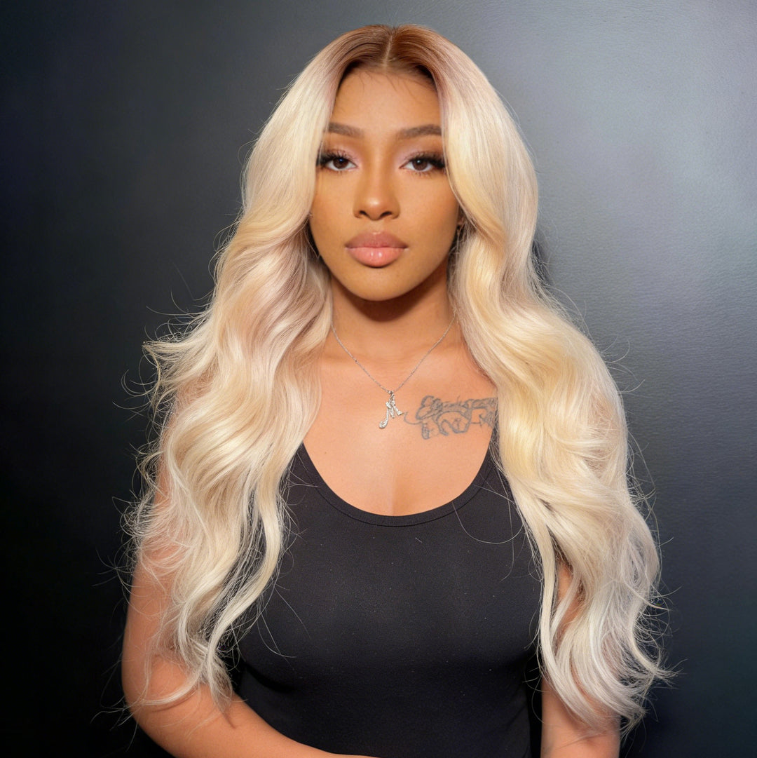 #613 Blonde With #4 Brown Root HD Lace Frontal Wig Root4/613 Brazilian Straight/Body Wave Lace Front Wig Human Hair Wig for Black Women 200% Density