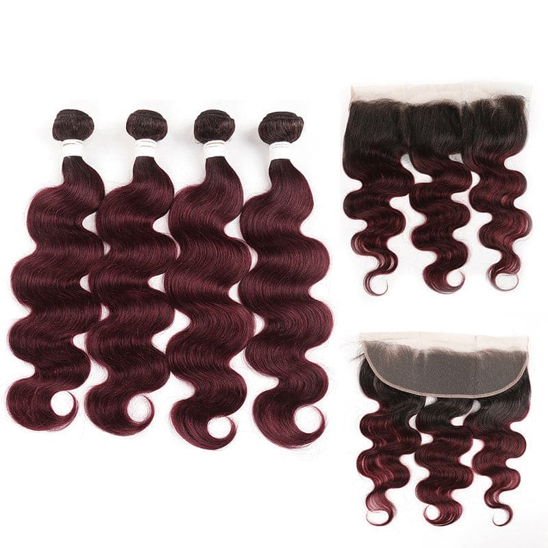 lumiere 1B/99J Ombre Body Wave 4 Bundles With 13x4 Lace Frontal Pre Colored Ear To Ear