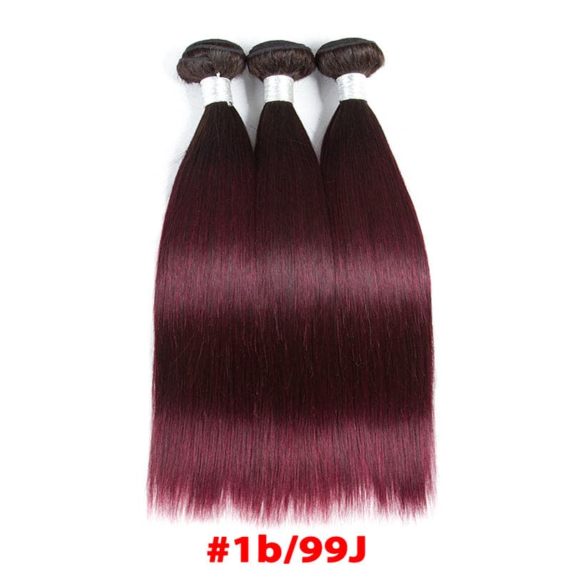 lumiere 1B/99J Ombre Straight Hair 3 Bundles With 13x4 Lace Frontal Pre Colored Ear To Ear