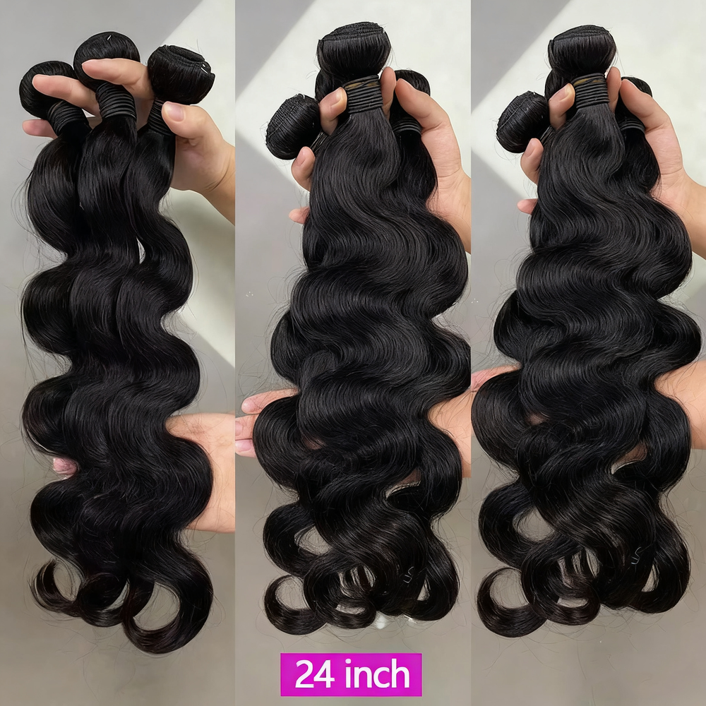 (B2) 24inch Body Wave Human Hair 4 Bundles 100% Brazilian Raw Human Hair for Women Thick Bundles 8 Days Delivery