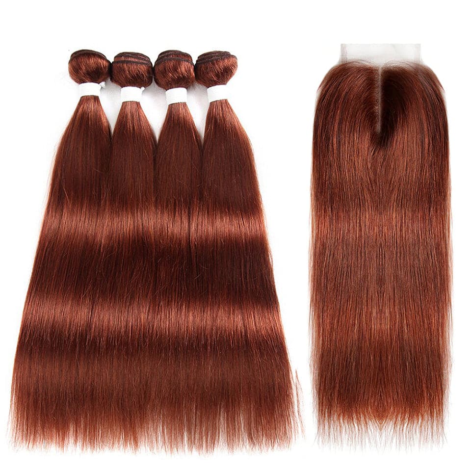 lumiere color #33 Straight Hair 4 Bundles With 4x4 Lace Closure Pre Colored human hair(No Code Need)