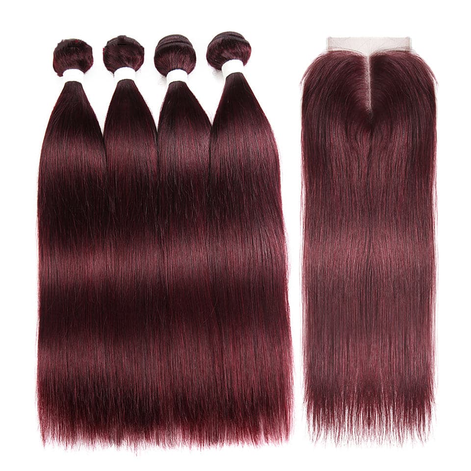 lumiere Red Bundles color 99j Straight Hair 4 Bundles With 4x4 Lace Closure Pre Colored human hair