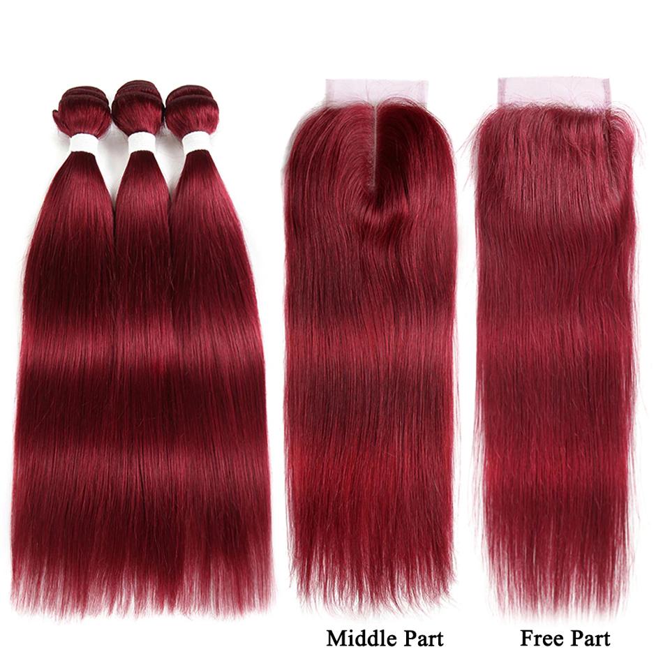Red Bundles Color burg Straight Hair 4 Bundles With 4x4 Lace Closure Pre Colored human hair