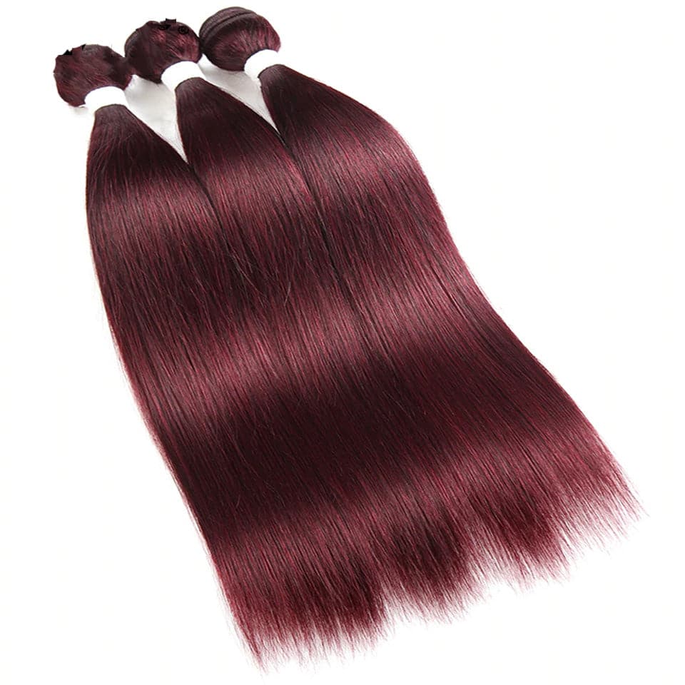 Red Bundles 99J Straight hair 3 Bundles With 13x4 Lace Frontal Pre Colored Ear To Ear