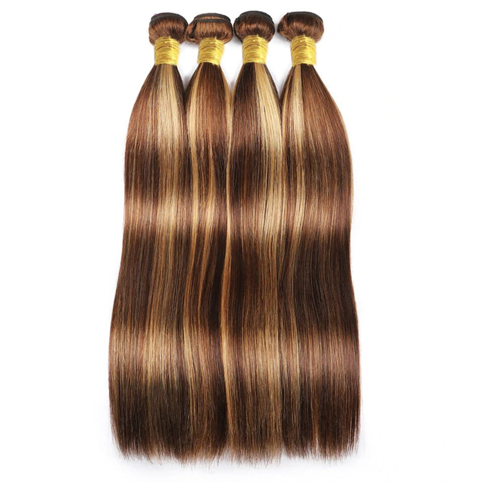 Highlight P4/27 Straight 4 Bundles With 13X4 Lace Frontal Peruvian Hair