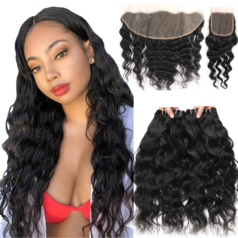 Natural Wave 4 Bundles With 13x4 Lace Frontal 100% Virgin Human Hair Bundles