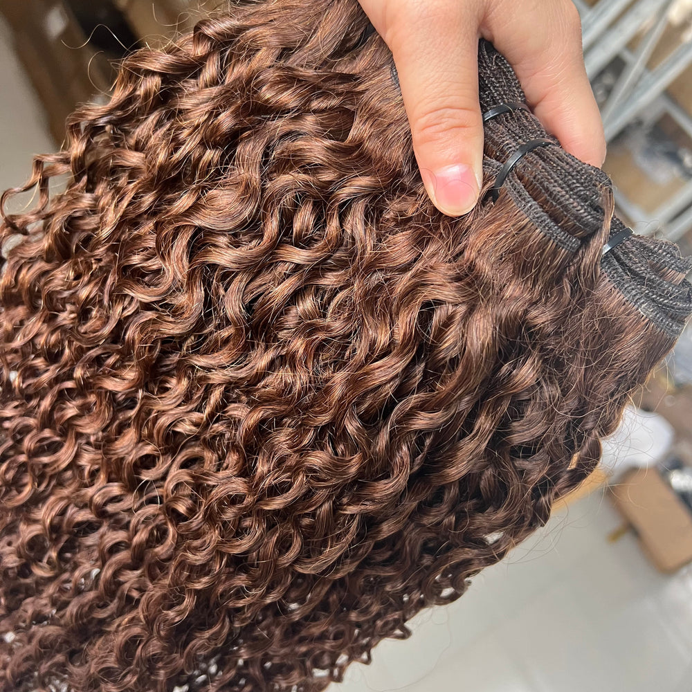 #4 Brown Colored 3 Burmese Curly With 4x4 Transparent Lace Frontal Burmese Curly Real Human Hair