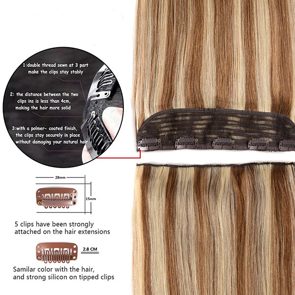 Lumiere #P4/27 Straight Human Hair Clip in One Piece Human Hair Extensions Real Human Hair Extension 5 Clips One Set For Women