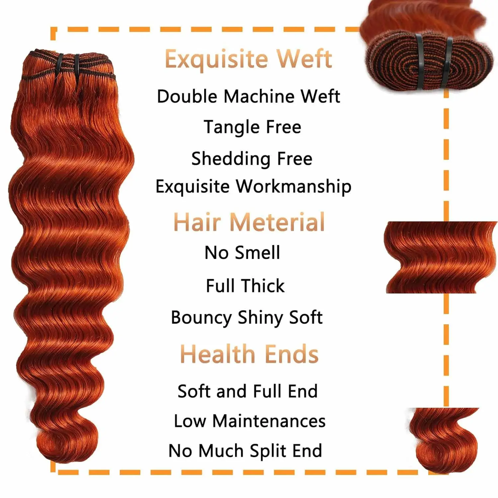 #350 Ginger Orange Color Loose Deep Wave Human Hair 3 Bundles With 4x4 Lace Closure Soft Thick Ginger Weave Bundles(No Code Need)