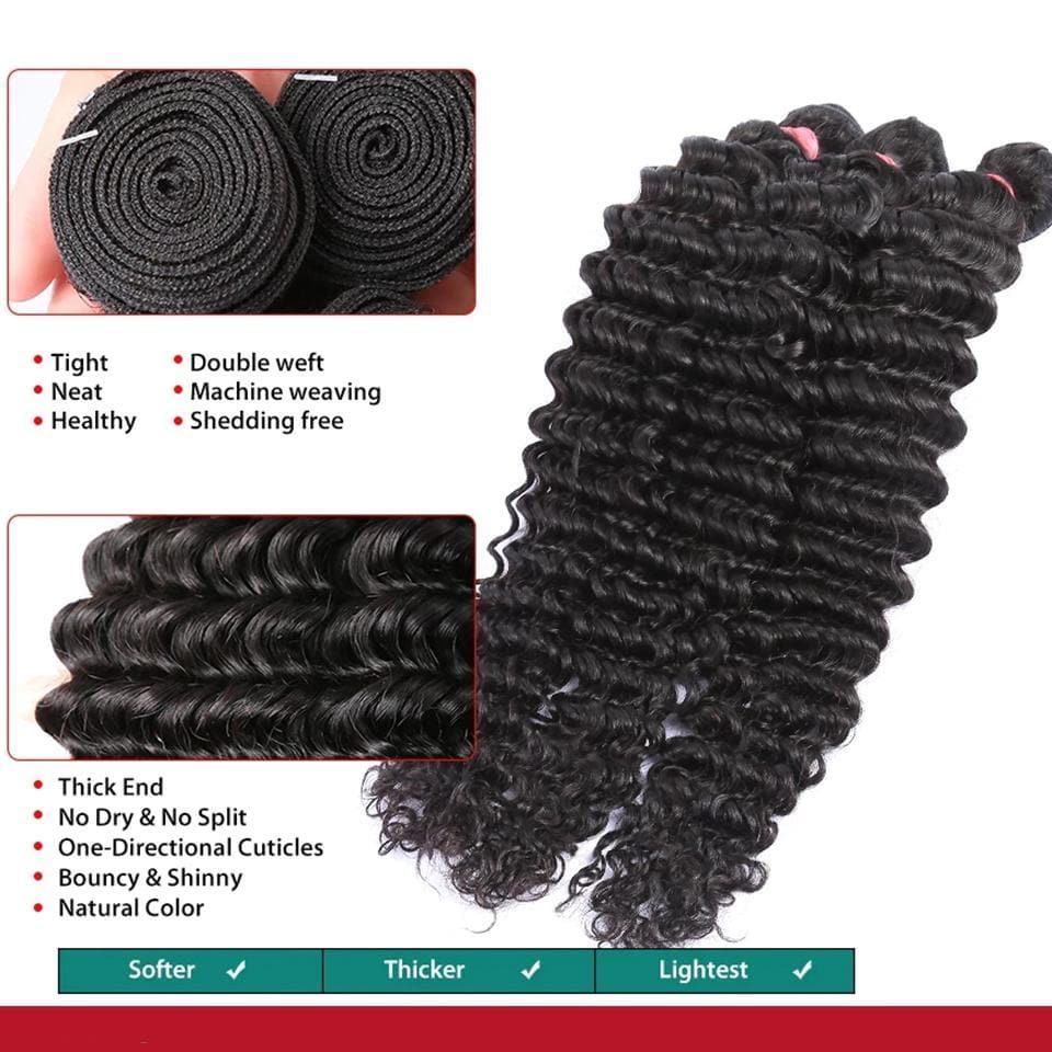 Deep Wave 3 Bundles With 13X4 Transparent Lace Frontal 100% Brazilian Human Hair