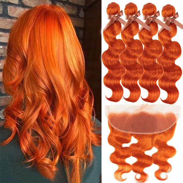 #350 Ginger Colored Body Wave 4 Bundles With 13x4 Lace Frontal(No Code Need)