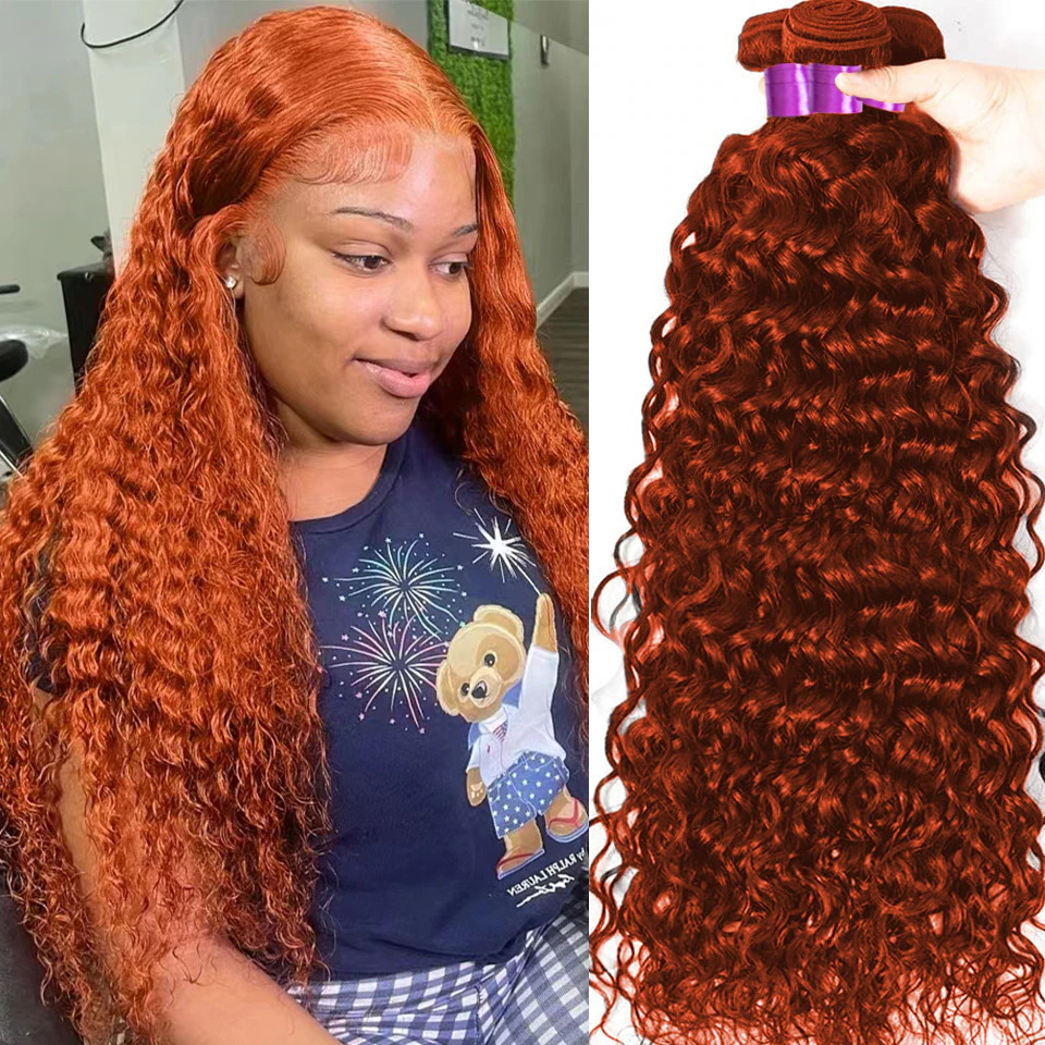 Water Wave Human Hair 3 Bundles #350 Orange Ginger Hair Weave Weft for African American Women 10-30 Inch(No Code Need)