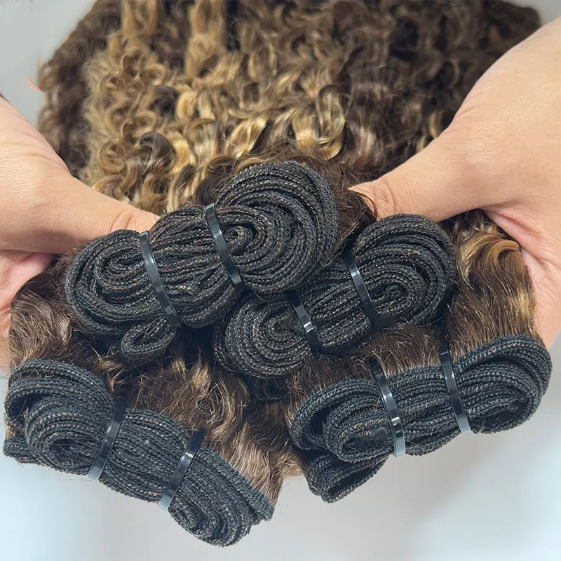 Highlight P4/27 Colored Burmese Curly 4 Bundles Pixie Curls Human Hair Bundles Ocean Spirals Curly