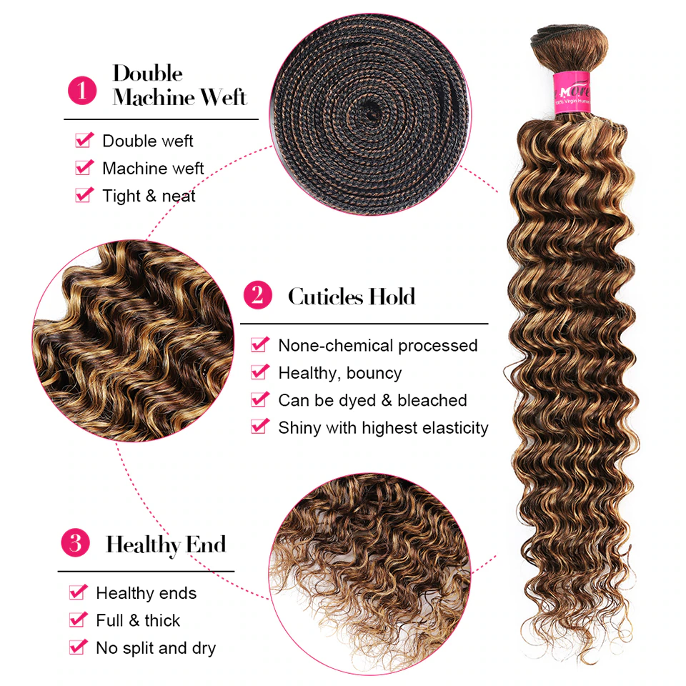 P4/27 Highlight Deep wave 4 Bundles Brazilian Remy Ombre Hair