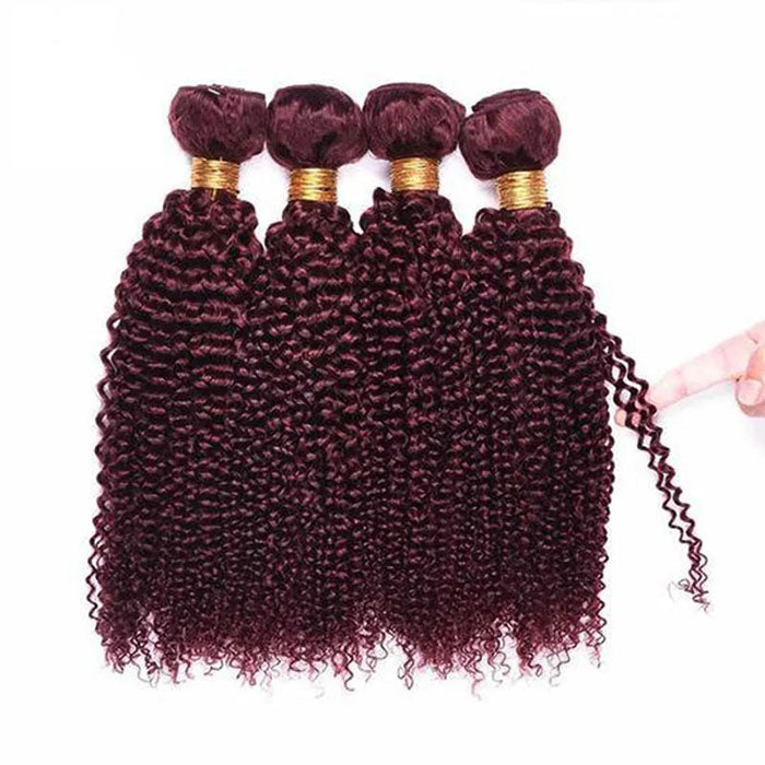 Red Bundles #99j Kinky Curly 4 Bundles With 4x4 Lace Closure Human Hair