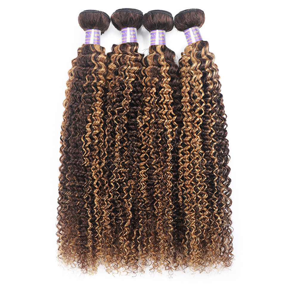 Highlight P4/27 Kinky Curly 4 Bundles With 13x4 Lace Frontal Brazilian Hair