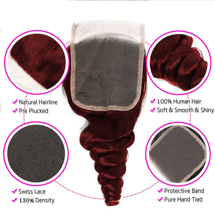 Red Bundles #99j Peruvian Loose Wave Hair Weave 3 Bundles With Closure 4x4 HD Lace Closure 100% huamn hair