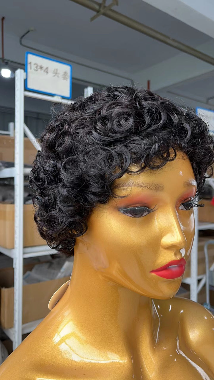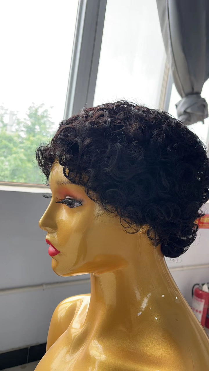 AMZ Pixie Cut Curly Bob 100% Human Hair Full Machine Made None Lace Gift Wigs