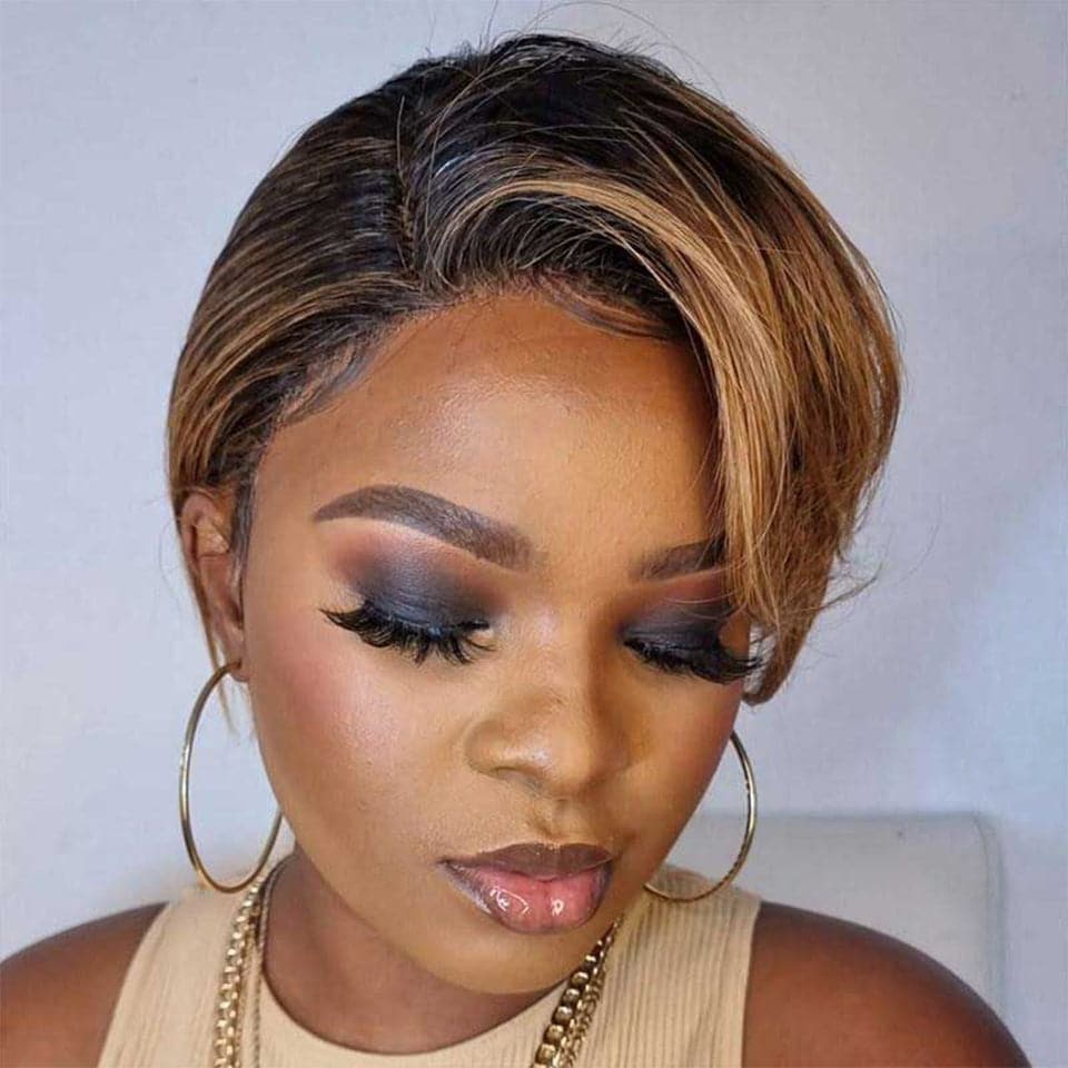#4/27 Ombre Short Bob Pixie Cut 13x4x1 T Lace Front Straight Human Hair Wigs