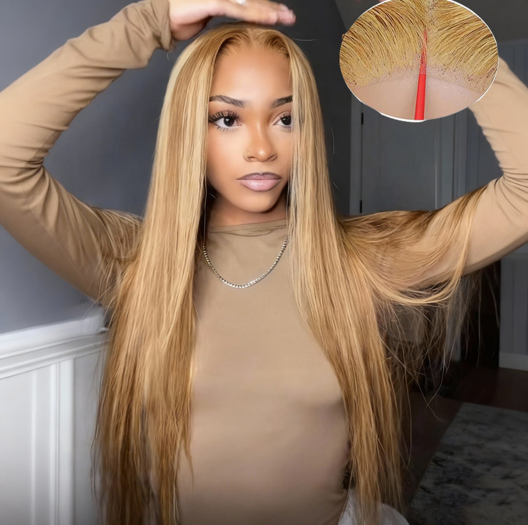 [Glueless Wig] #27 Honey Blonde Strai...