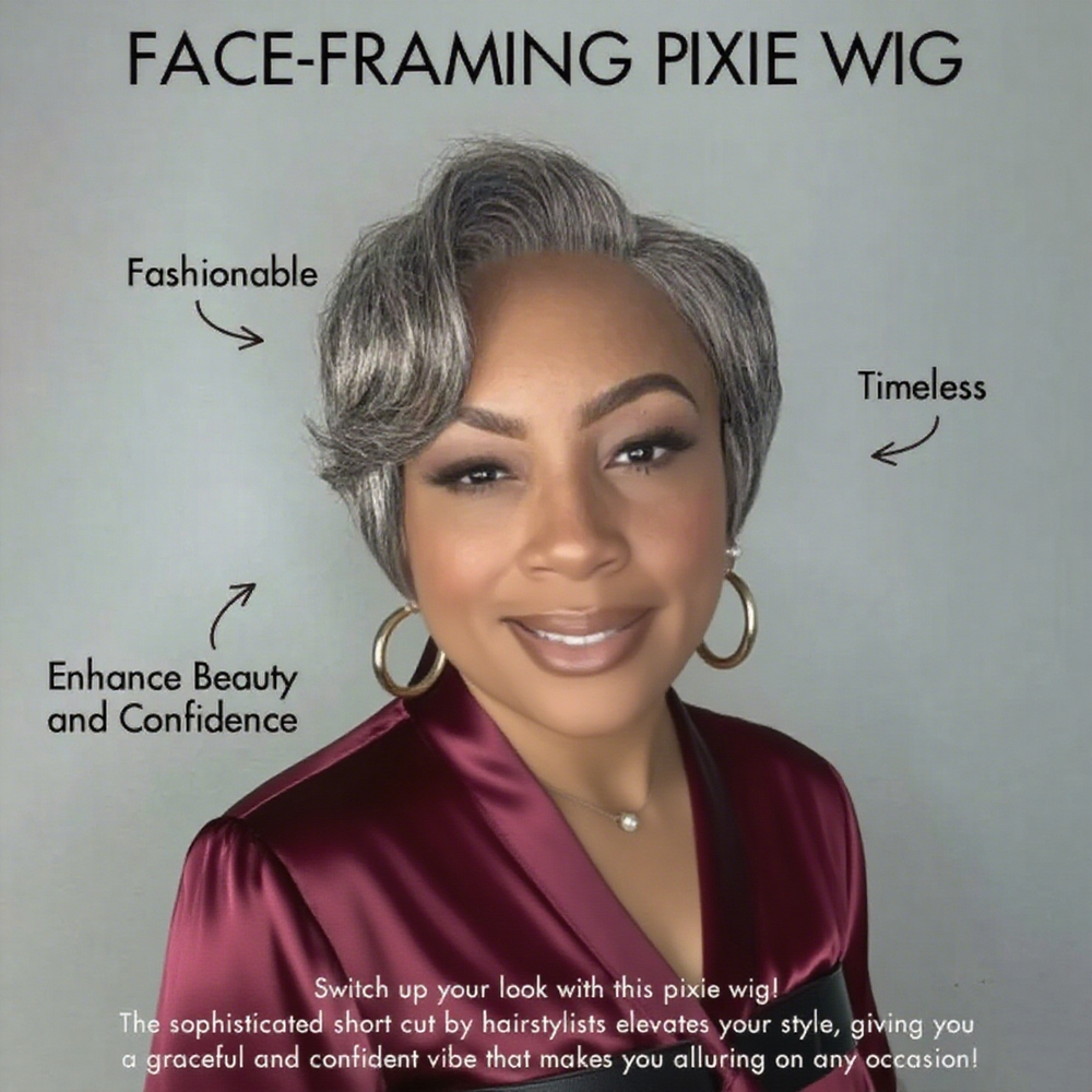 Lumiere Pixie Cut Human Hair Wigs Salt & Pepper Wigs Short Bob Left C Part 4x6x1 Lace Grey Wig Pre-Cut Lace