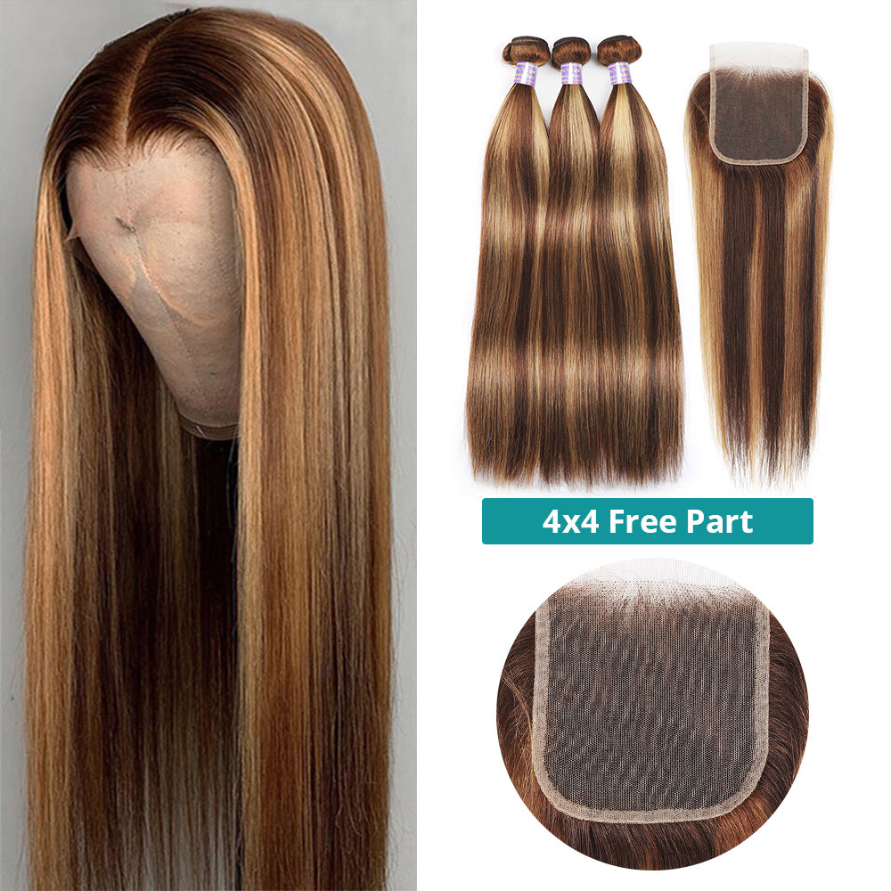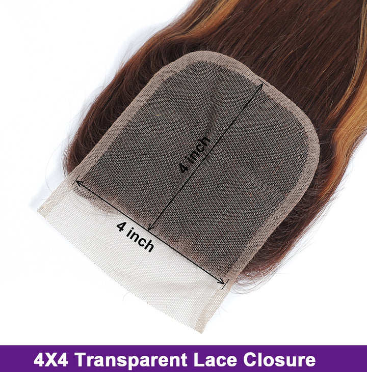 Highlight P4/27 Straight 3 Bundles with 4x4 Lace Closure Human Hair