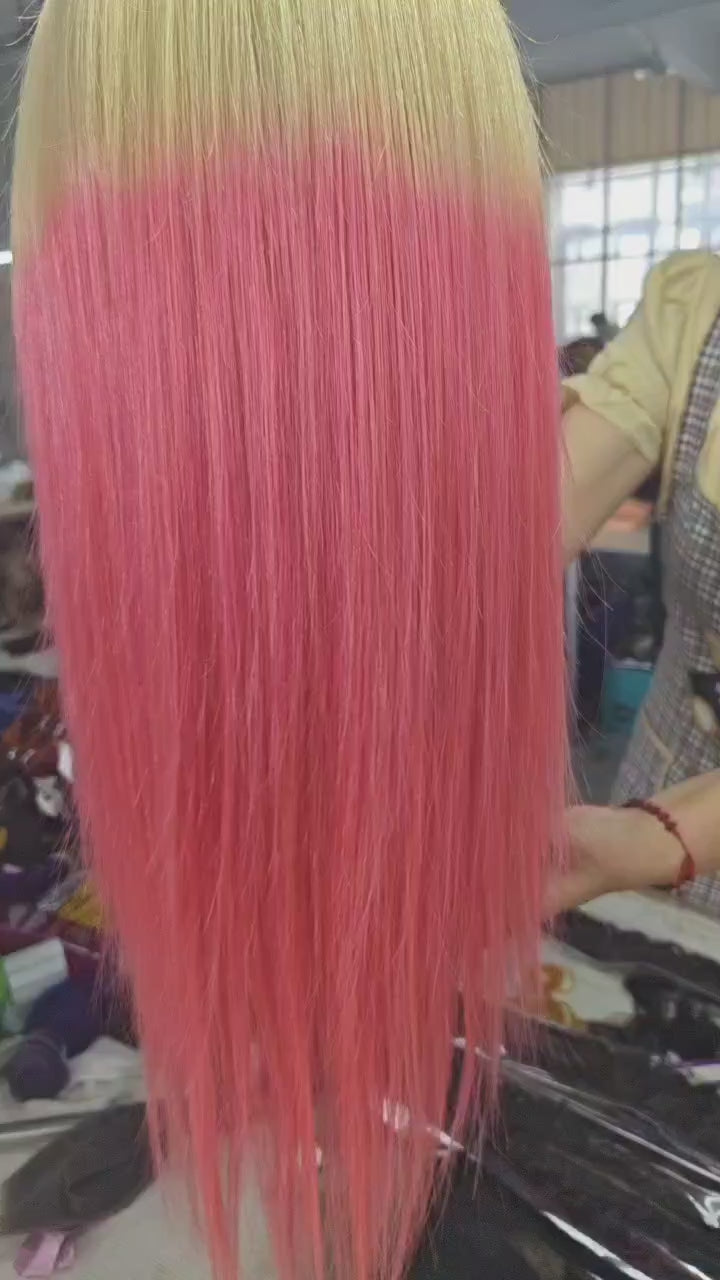 | Hair Type | 613 Blonde & light pink straight hair lace front human hair Wigs? |