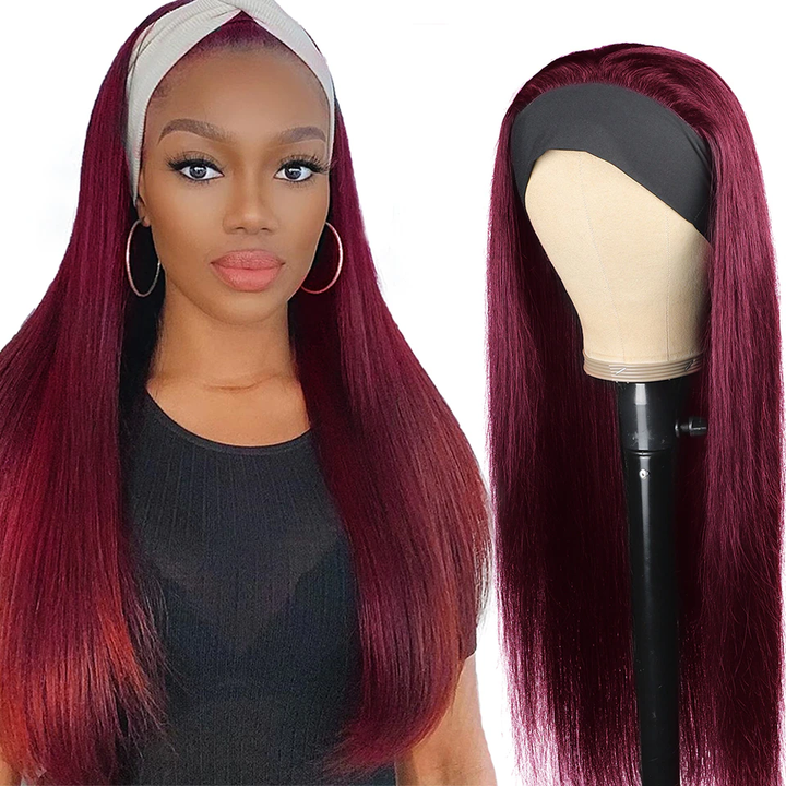 Burgundy Straight Hair Headband Wigs For Women Lumiere Hair Peruvian Full Machine Made Colored Human Hair Wigs