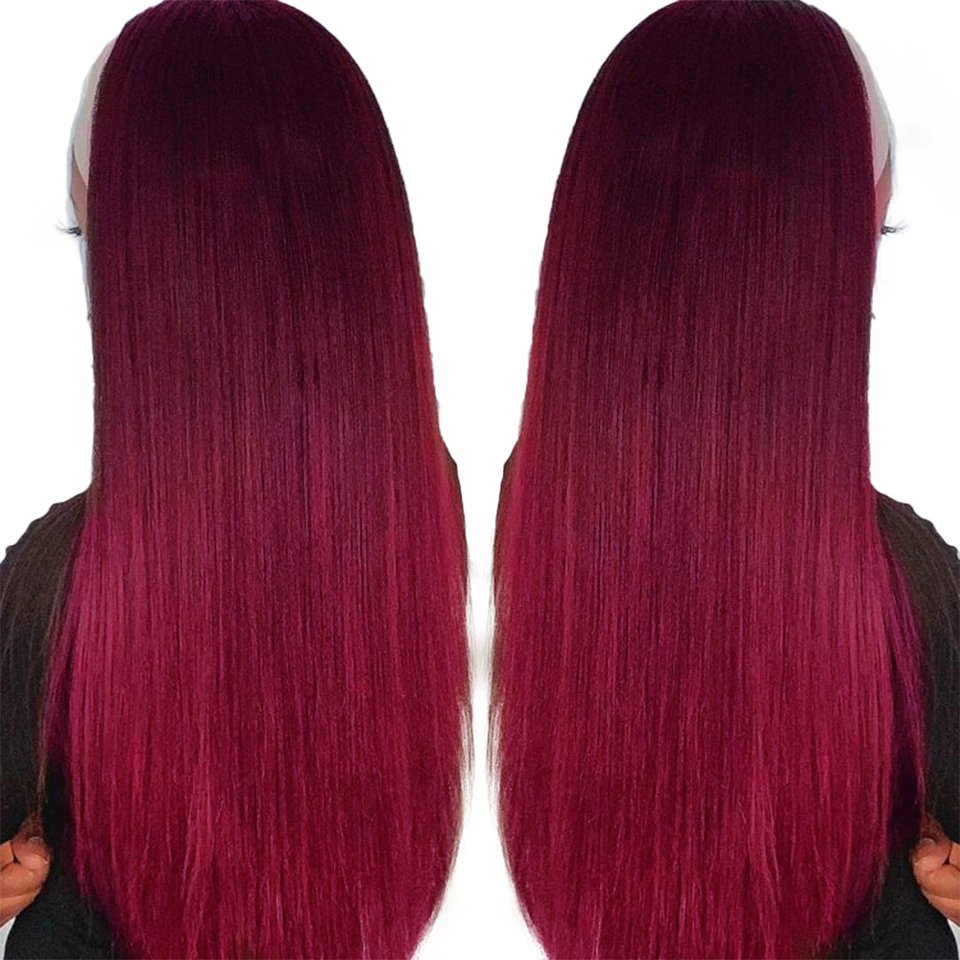 | Hair Type | Ombre 1B/99J Straight Headband None Lace Human Hair Wigs Dark Burgundy |
