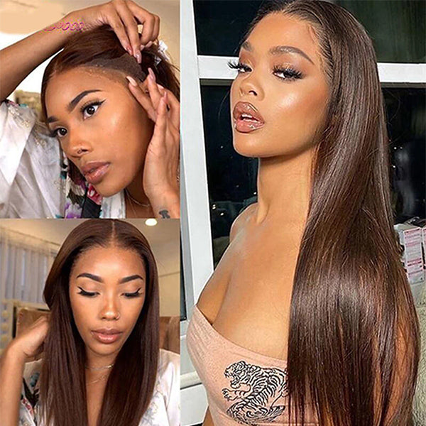 Chocolate Brown Colored Straight HD Lace Frontal Human Hair Wigs for women