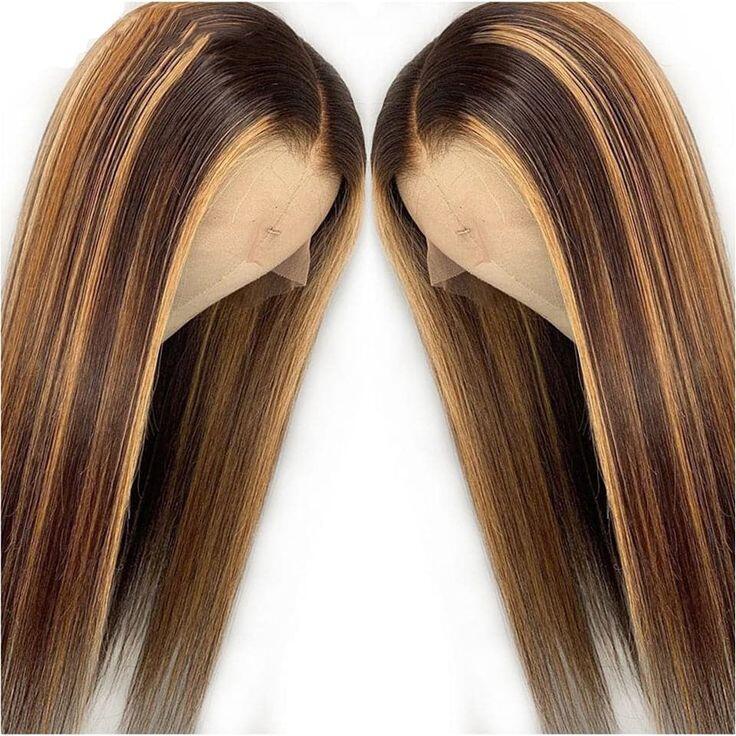 | Hair Type | #4/27 Ombre Lace Front Straight Wig Highlight Human Hair Wigs Pre Plucked |