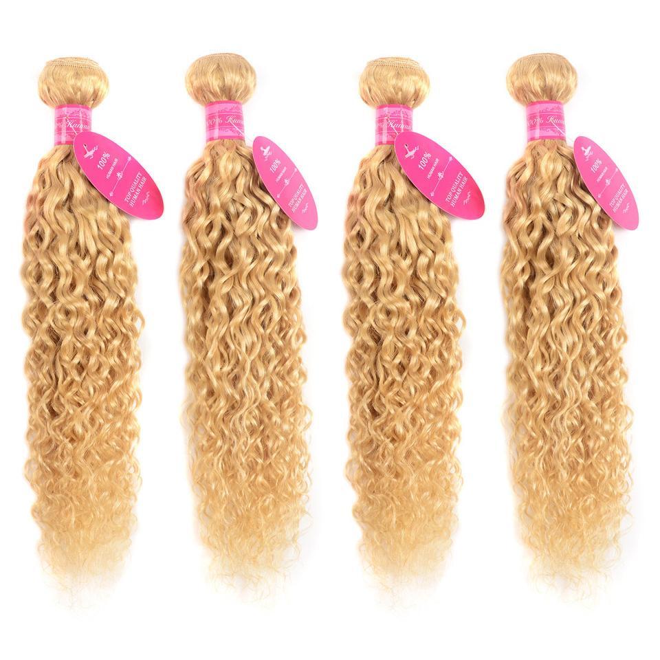 613 Blonde Water Wave 4 Bundles with 4x4 closure with transparent lace