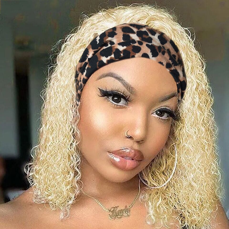 #613 Headband kinky curly Human Hair Wigs Full Machine Made None Lace Wig