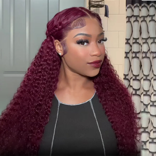 Lumiere Hair #99J Kinky Curly 13x4 Lace Closure/Frontal Wigs For Women Pre Plucked