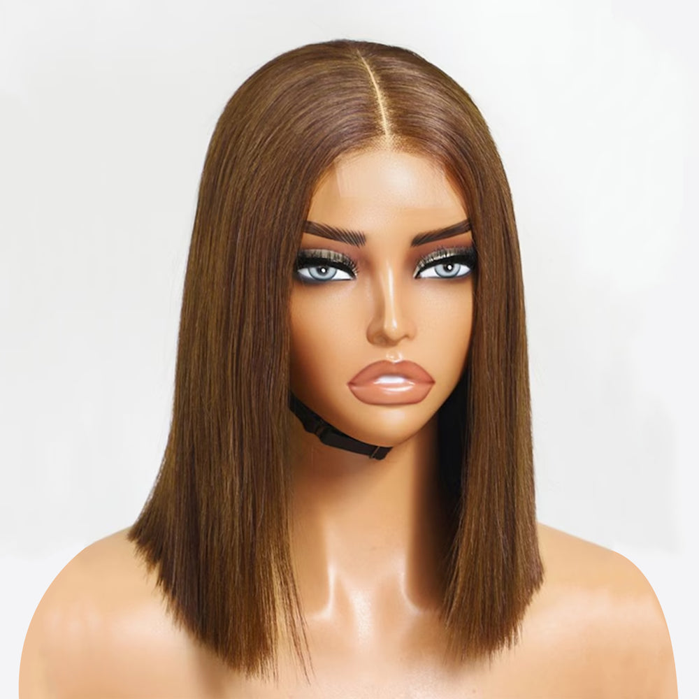 Lumiere Blunt Cut #4 Brown 2x6 Lace Closure Wigs Straight Short Bob Wig