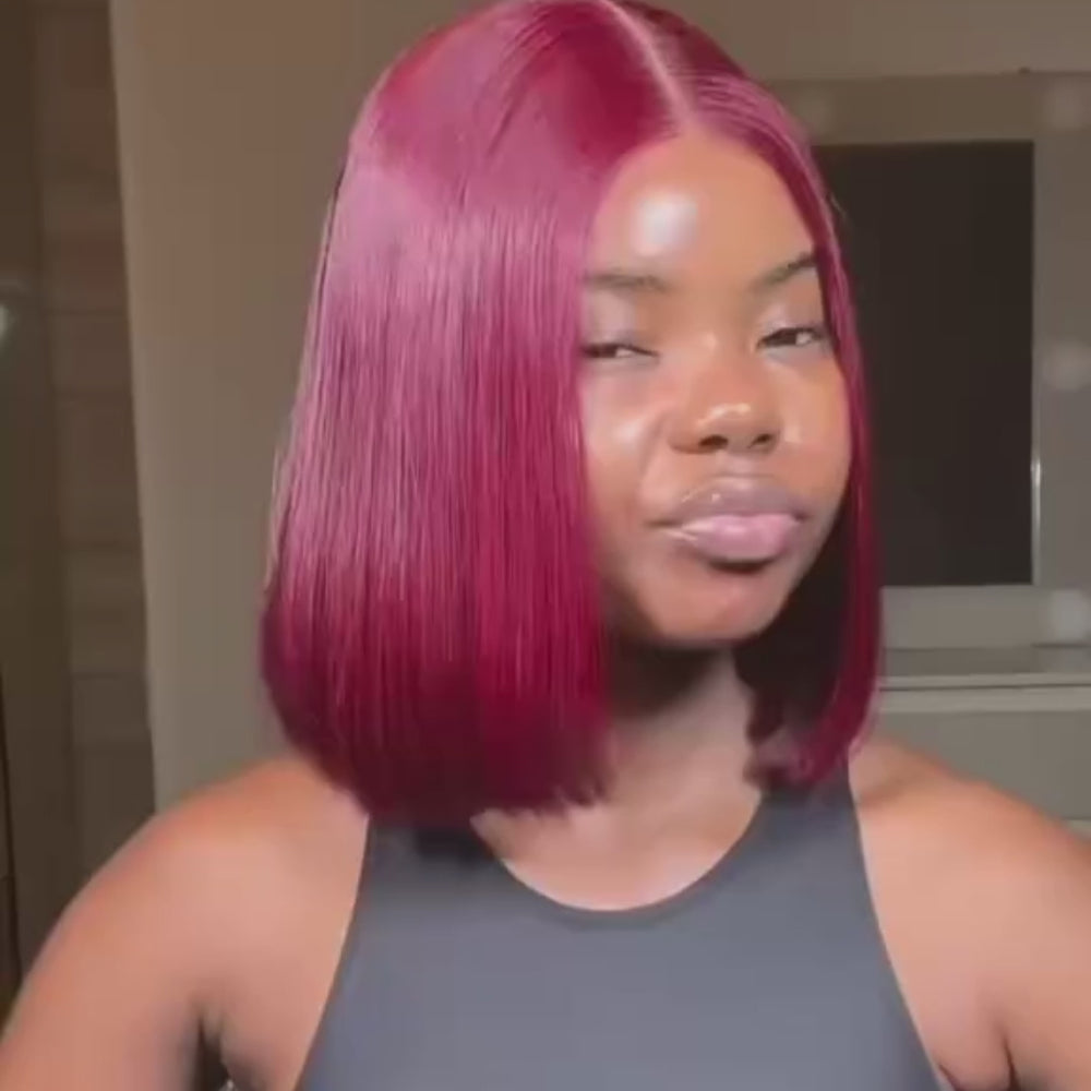 Lumiere 2x6 Lace Closure Straight Bob Wigs #99J Red Colored Blunt Cut New Short Bob Wigs