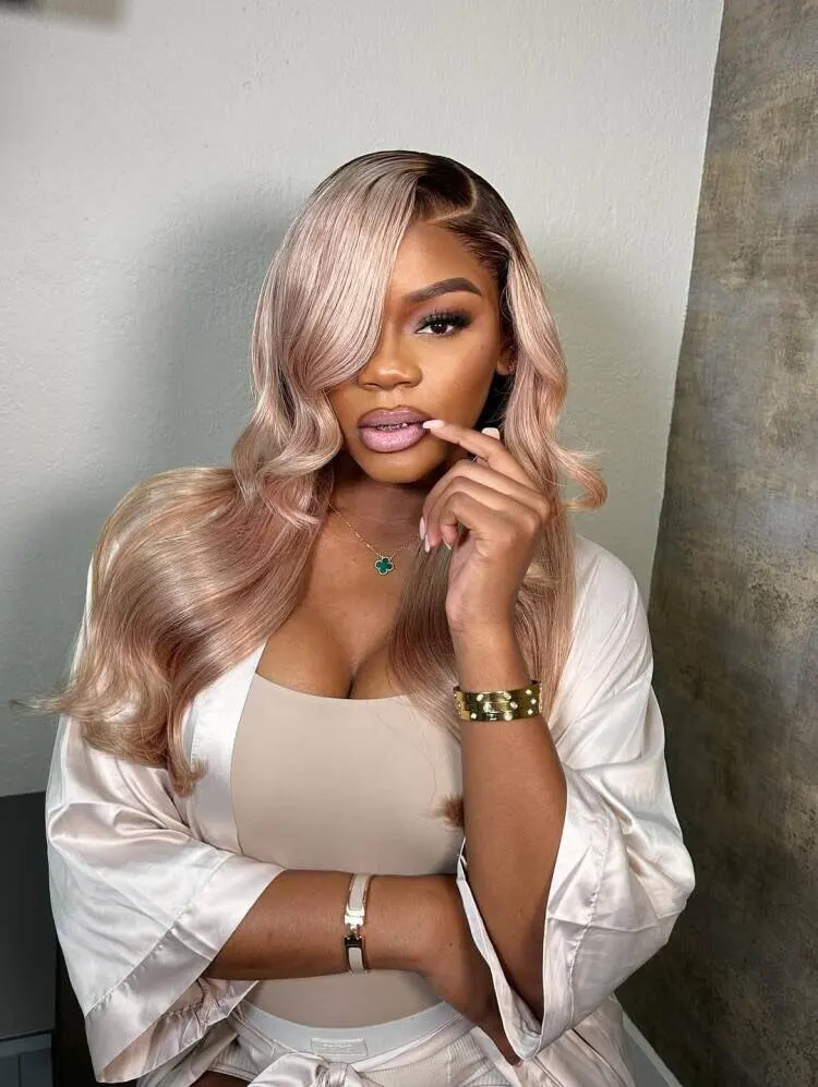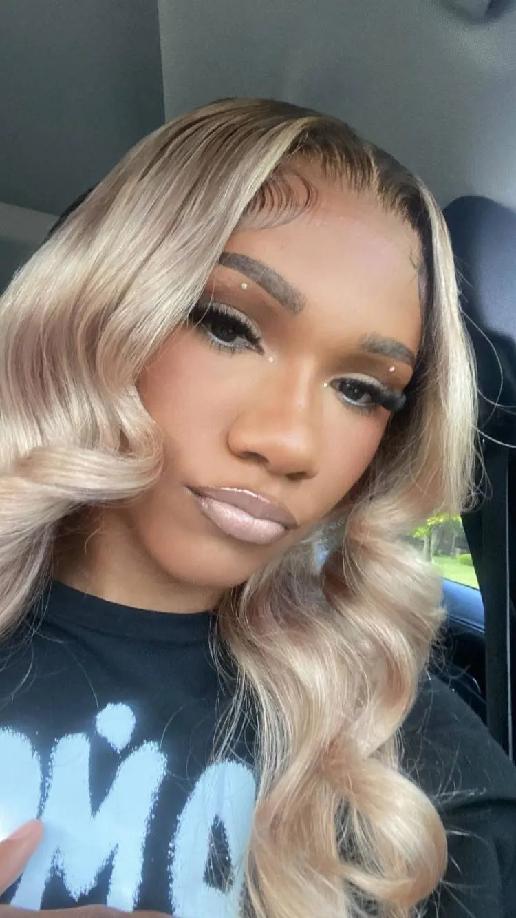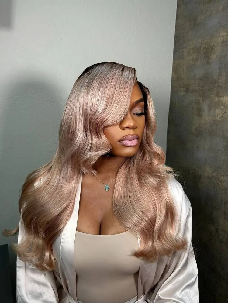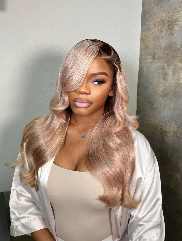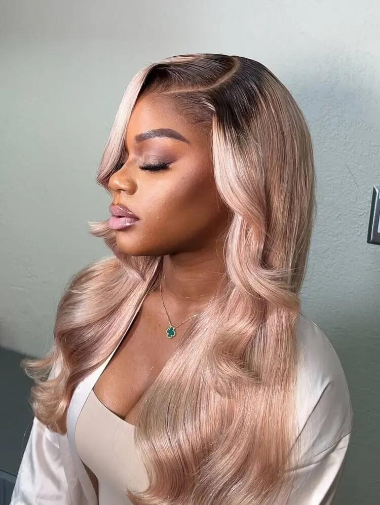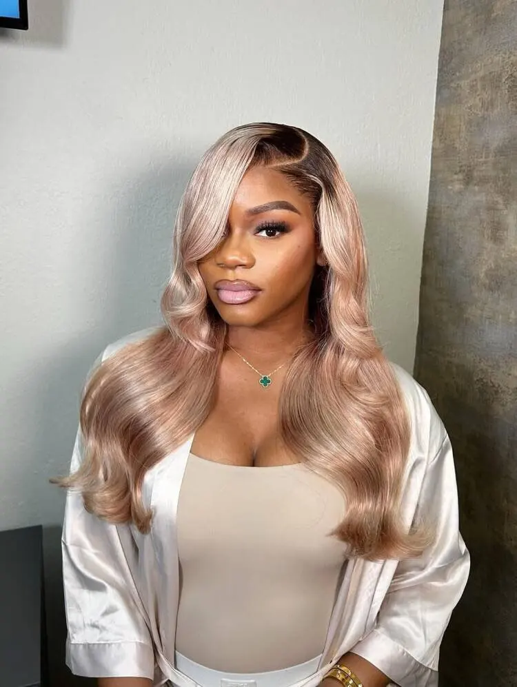 200% Density Ombre Pink Ash Blonde With 4 Brown Root Lace Front Body/Straight Wig Root4/Pink Blonde Transparent Lace Front Human Remy Hair Wigs for Women