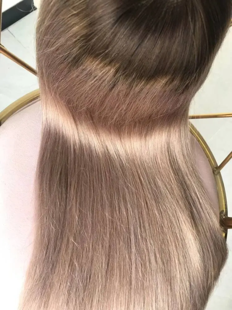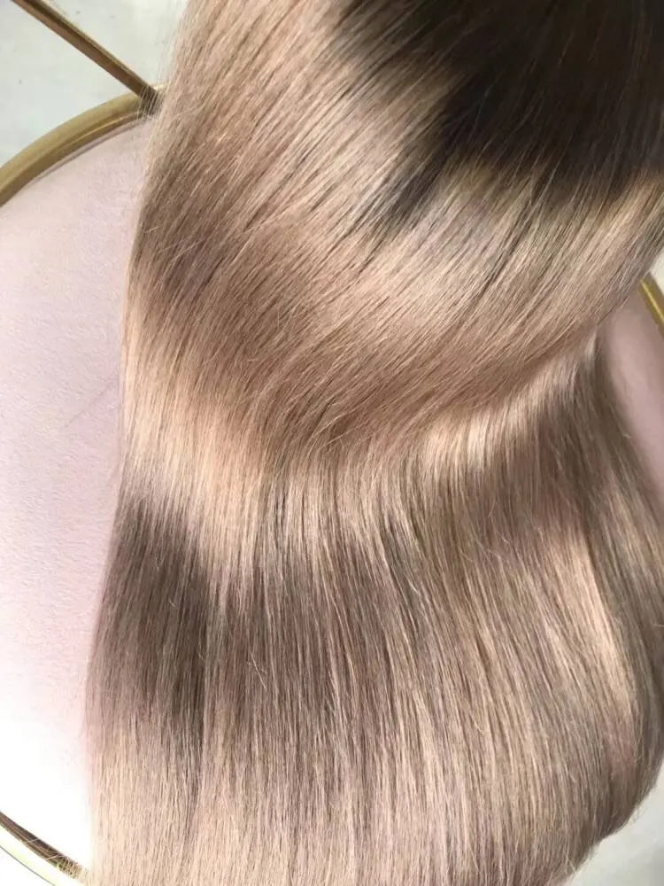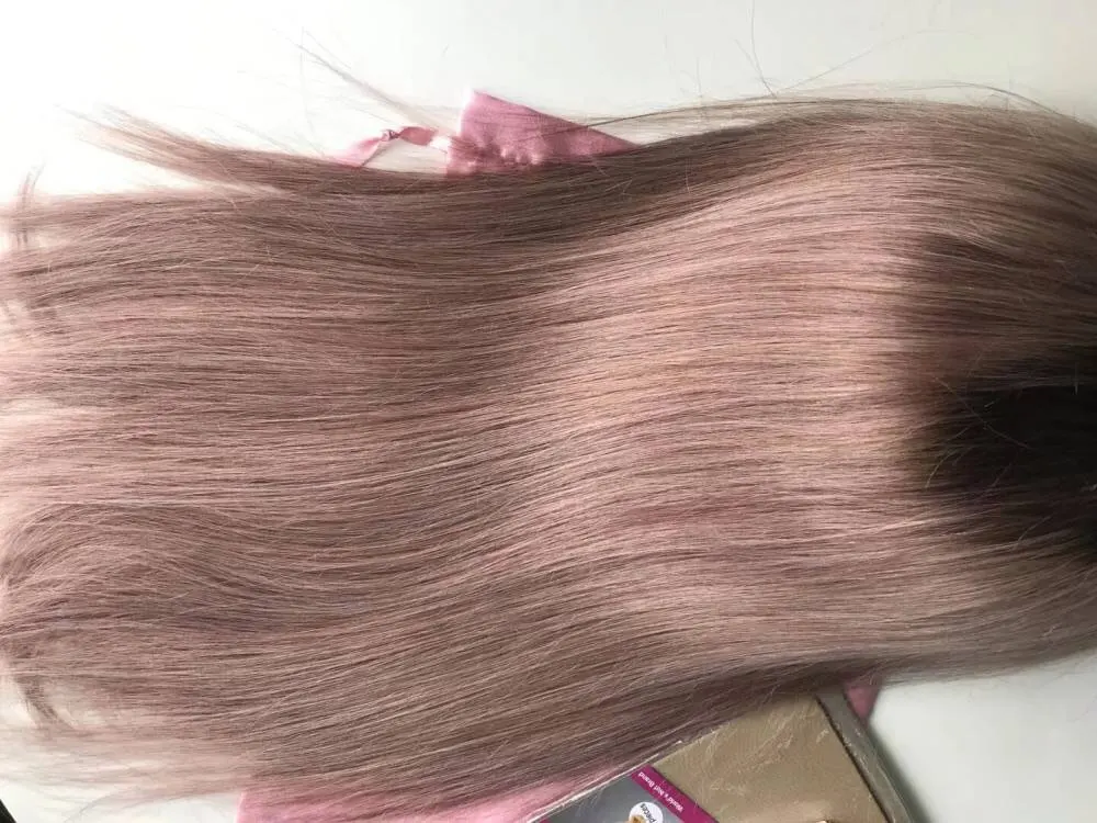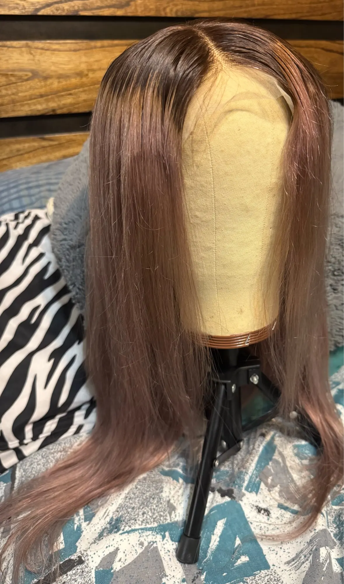 Pink Blonde With Ash Brown Root 4 Ombre Lace Front Wigs Silky Straight/Body Root4/Pink Blonde Human Hair Wig 200% Density