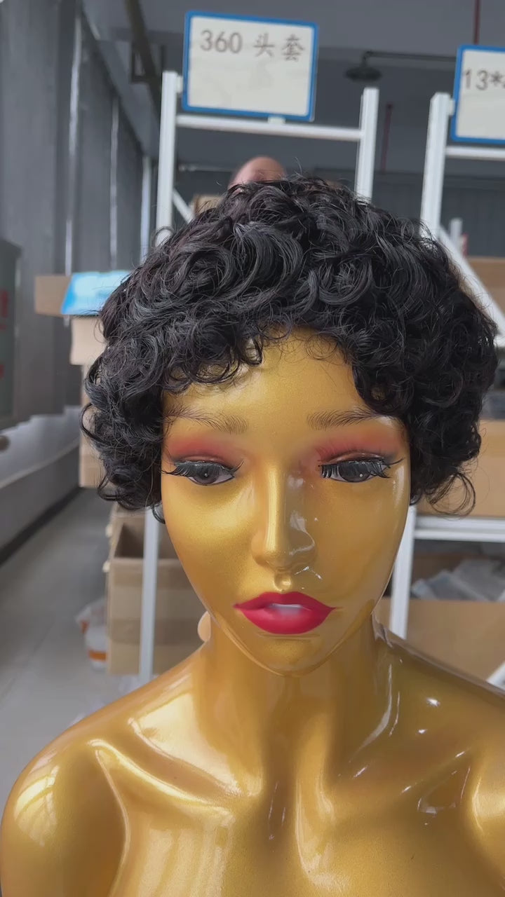 AMZ Pixie Cut Curly Bob 100% Human Hair Full Machine Made None Lace Gift Wigs