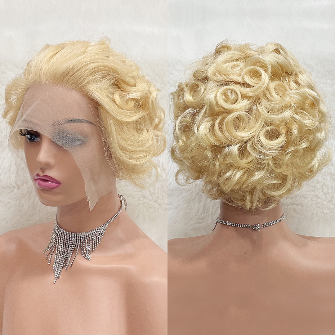 | Hair Type | 613 Blonde 13x1 Lace Loose Curly Short Pixie Cut Bob Wigs For Women |