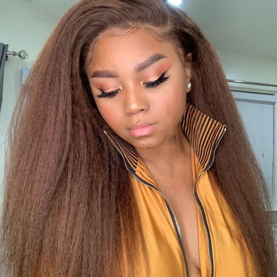 | Hair Type | #4 Brown Kinky Straight Lace Wigs |