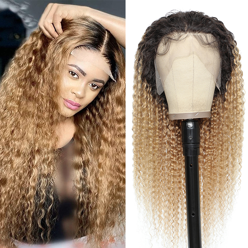 Hair Type Lumiere 1B/27 Ombre Kinky Curly 4x4/5x5/13x4 Lace Closure/Frontal 150%/180% Density Wigs For Women Pre Plucked