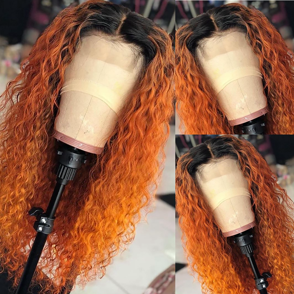 Hair Type Lumiere 1B/350 Ombre Kinky Curly 4x4/5x5/13x4 Lace Closure/Frontal 150%/180% Density Wigs For Women Pre Plucked