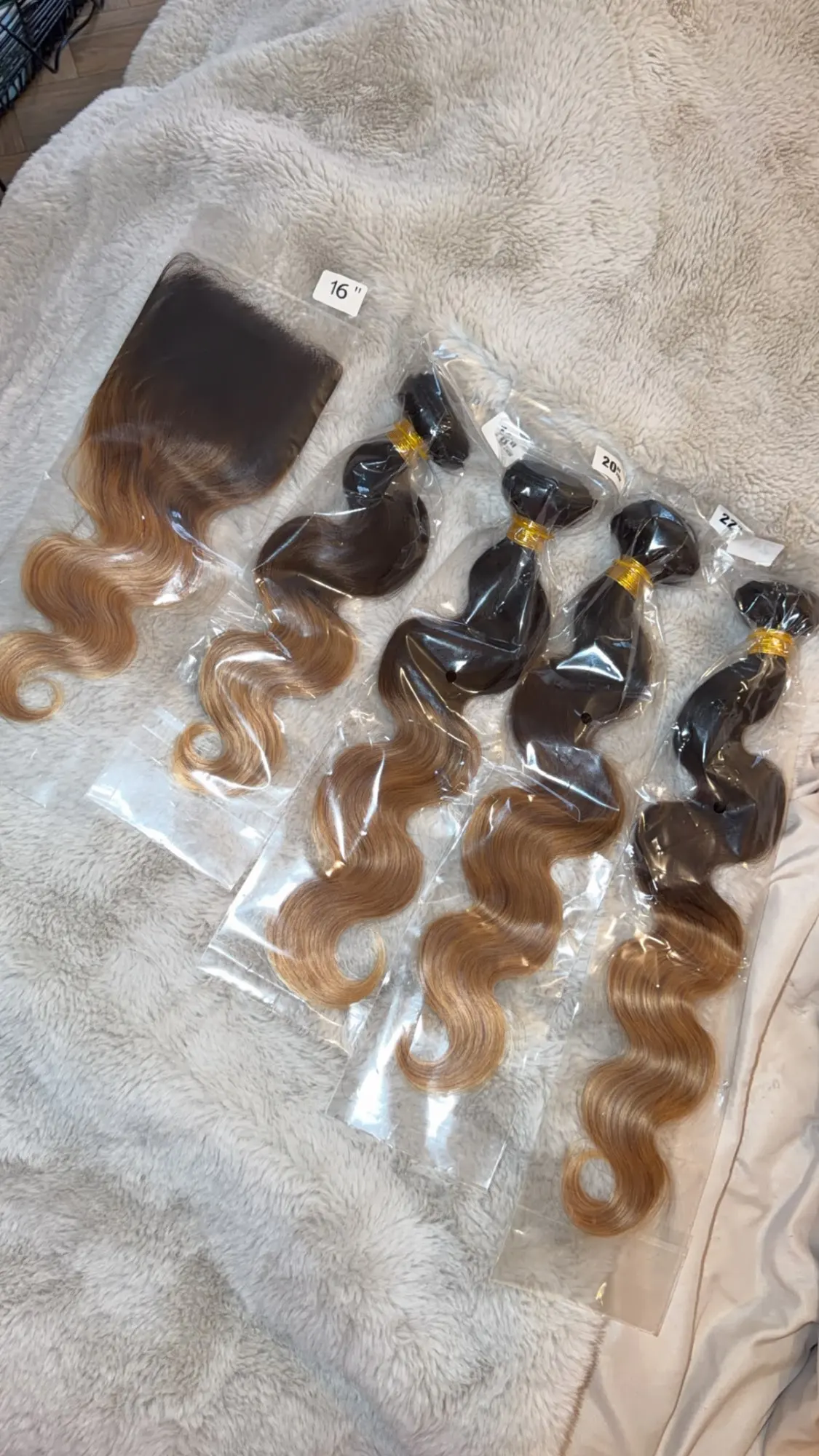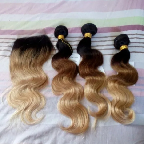 Ombre 1b/4/27 Body Wave 3 faisceaux avec fermeture à lacet 4x4 cheveux humains