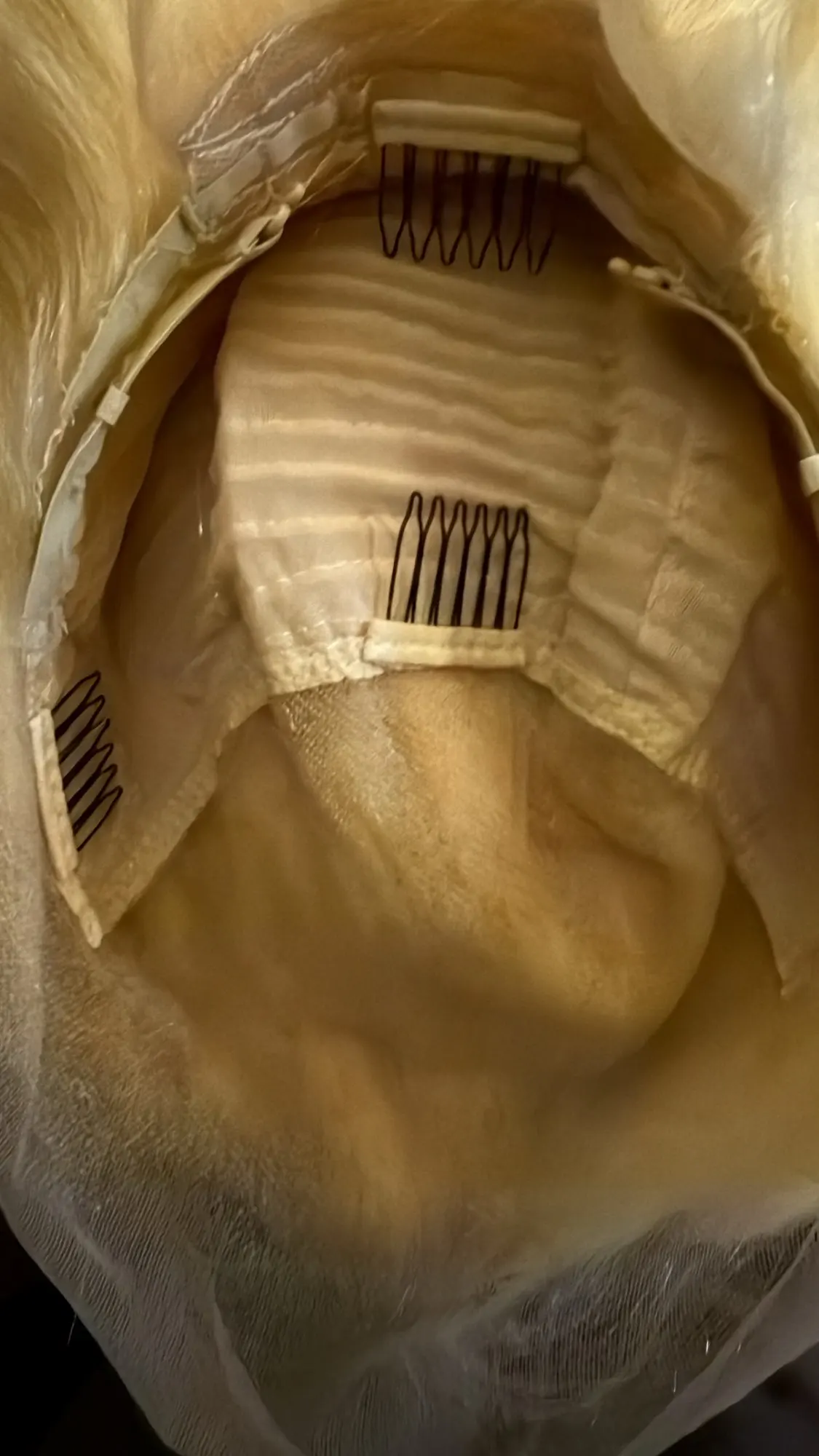 | Taille du bonnet de perruque | Bonnet de perruque 22,5, peignes avec bande élastique et bretelles réglables |